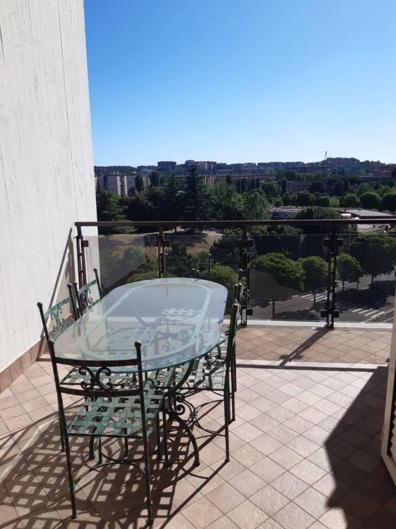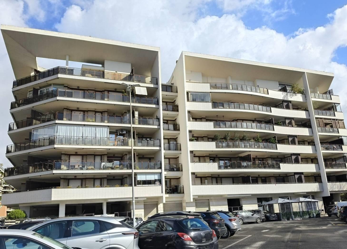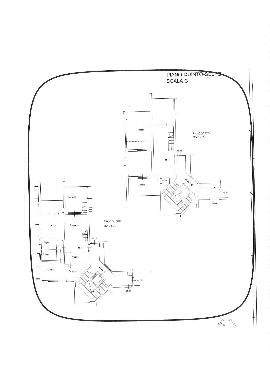 Al quinto piano l'immobile è composto da soggiorno, cucina, disimpegno che conduce alla zona notte dove vi sono due camere e doppi servizi, al piano vi è un primo splendido terrazzo ed un balcone di servizio.