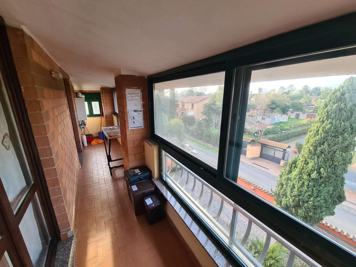 L'appartamento è così composto: soggiorno con angolo cottura con accesso al balcone di pertinenza, disimpegno, camera matrimoniale, bagno ed infine conclude il tutto un posto auto interno di pertinenza. L'immobile presenta 2 esposizioni, caldaia semi-nuova, aria condizionata caldo/freddo e portone in legno. L'immobile si trova in una zona tranquilla ed a due passi della Roma Fiumicino, inoltre non ci sono spese condominiali ed è ottimo per chi cerca un investimento.