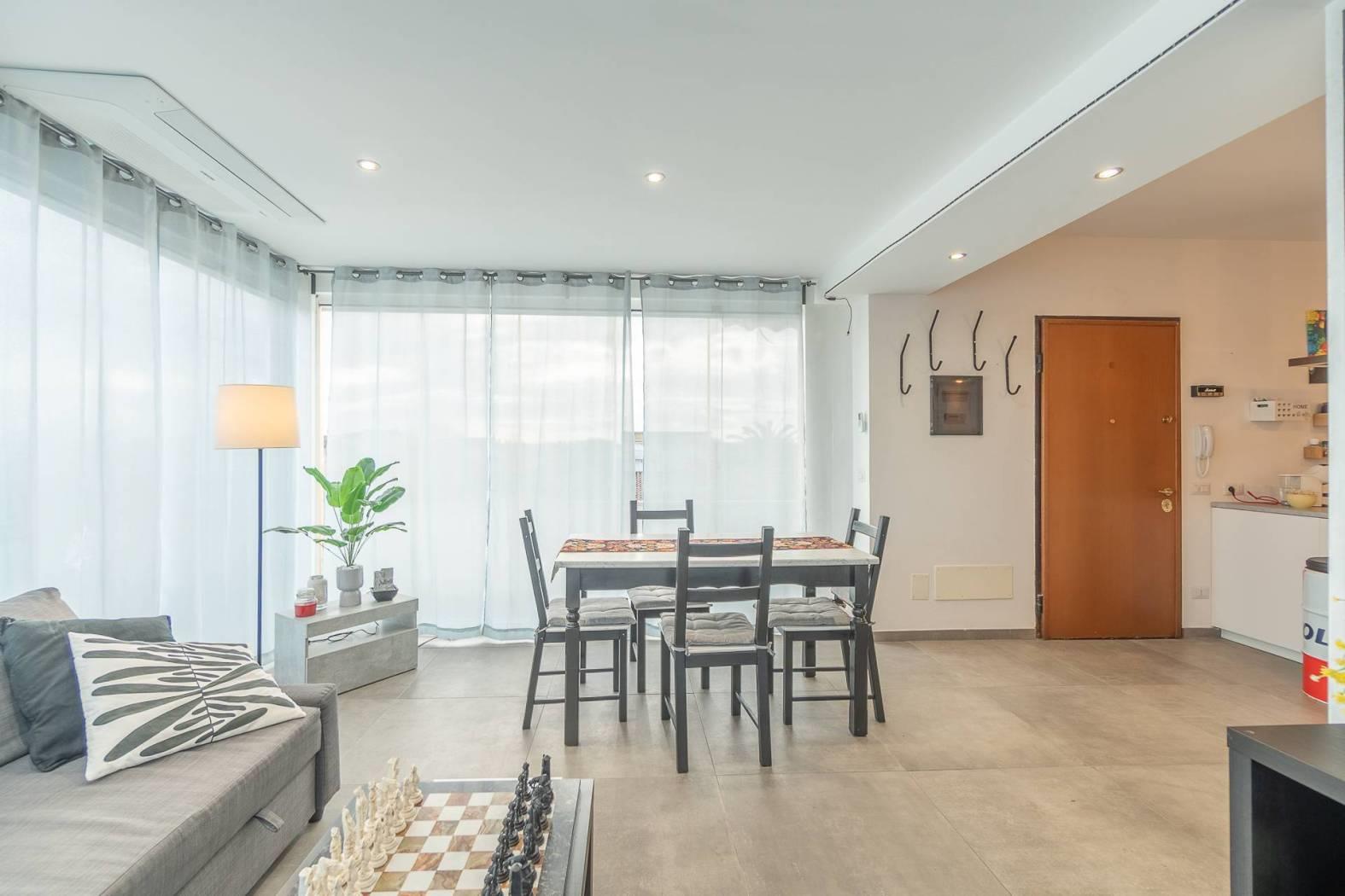 Se cerchi una casa pronta da vivere, dove la luce naturale e gli ampi spazi esterni sono i veri protagonisti, questo attico rappresenta la soluzione ideale. Situato nella zona di Isola Sacra, l'immobile è stato oggetto di una totale e raffinata ristrutturazione nel 2021.