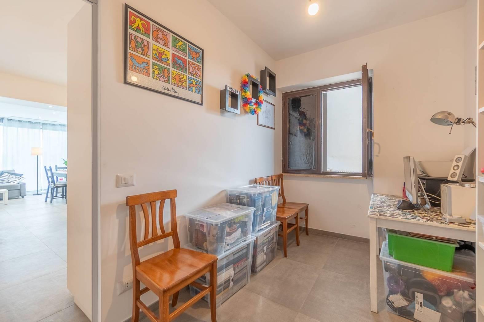- Zona Notte: Una spaziosa camera matrimoniale, una cameretta versatile e un bagno finestrato dotato di un ampio e confortevole box doccia.