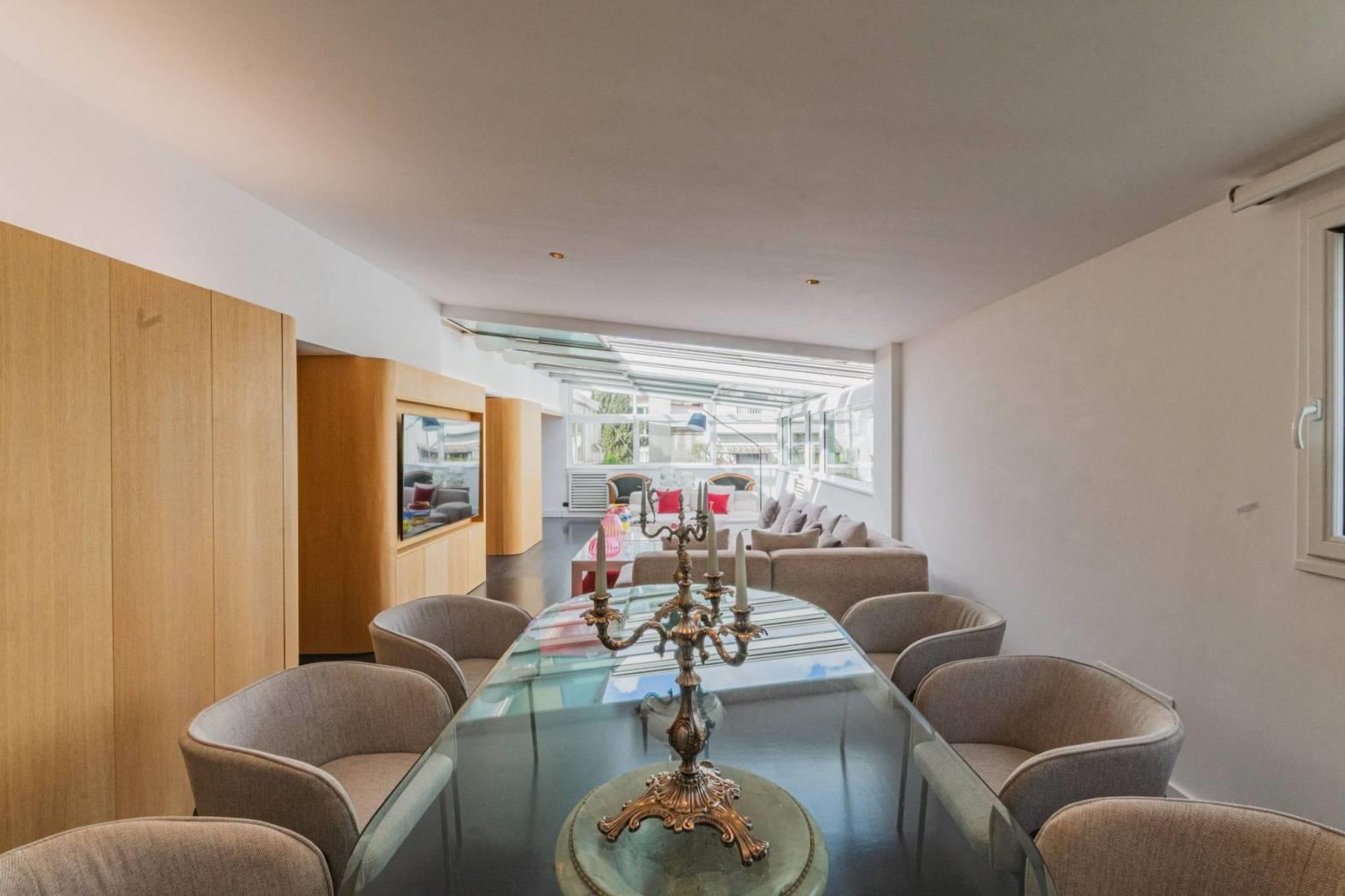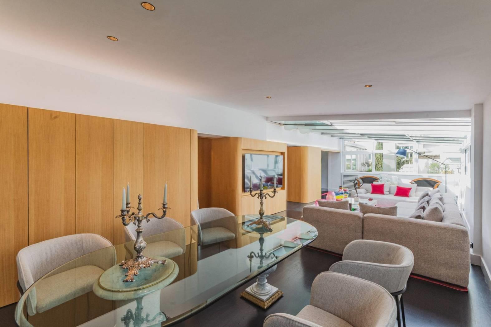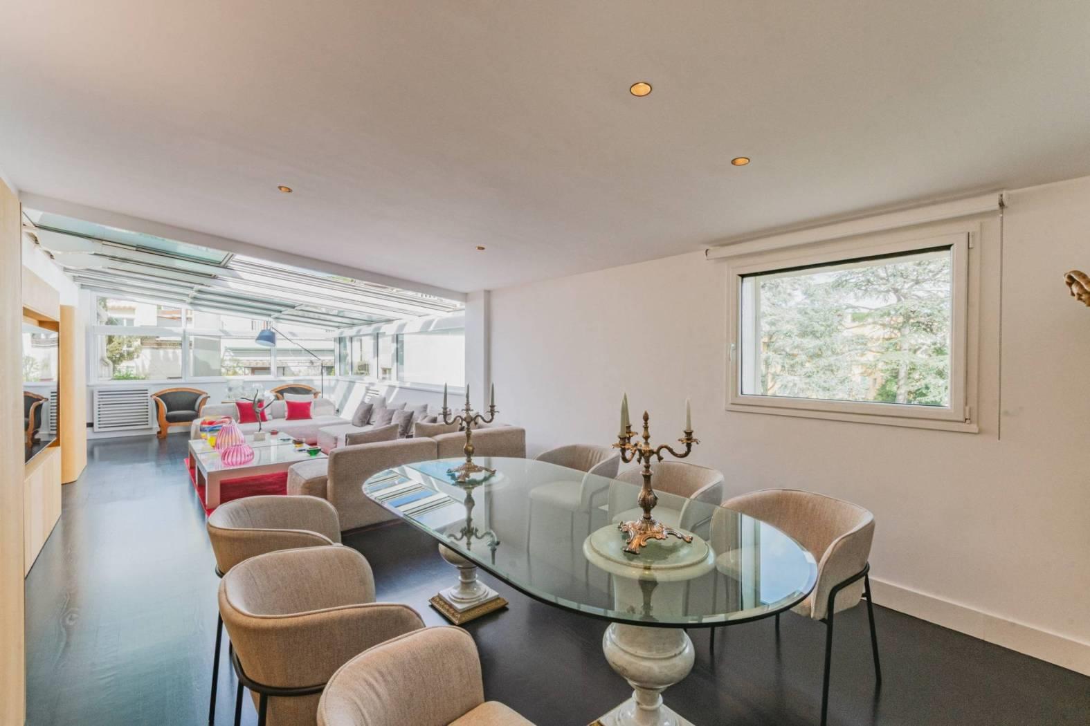 Un Ingresso Trionfale nel Cuore della Luce: Dimentica le scale o i pianerottoli comuni. L’ascensore ti accoglie direttamente dentro l’immobile, aprendosi su un universo di calore e design. Sotto i tuoi piedi, il parquet in Doussié Nero stende un tappeto di eleganza naturale che corre lungo tutta la superficie di questa dimora unica.
