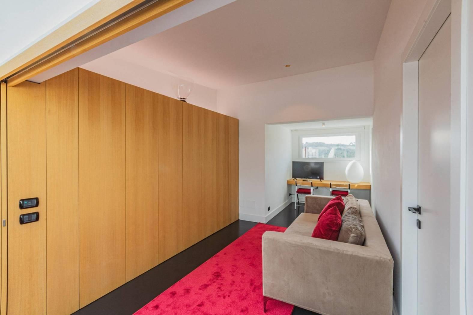 In questa casa, l'ordine è una forma d'arte. Ogni angolo è stato ottimizzato con armadiature a muro su misura, realizzate da maestri falegnami per offrirti una capienza straordinaria senza sottrarre spazio alla vista.