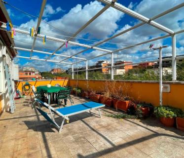 Panoramico e rifinito superattico terrazzato in Via Enrico Fermi, in vendita col Realty Store di Area-re a Marconi. L'appartamento è posto al nono piano di una palazzina monoscala nelle adiacenze di Piazza Enrico Fermi, ed è raggiungibile con l'ascensore che arriva al piano 8 per poi accedere grazie ad una rampa di scale: la casa è stata ristrutturata completamente nel 2019 e presenta un ingresso con ripostiglio, la zona giorno con cucina a vista dotata di finestre e porta-finestra che conduce nell'ampio spazio esterno di forma quadrata di circa 45 metri quadri di consistenza. Le due luminose camere matrimoniali esposte a sud e i doppi servizi completano la composizione interna. per i pavimenti troviamo il gres porcellanato per tutta la superficie, mentre ogni ambiente è munito di condizionatore Ariston; le porte sono a scrigno e la cucina è su misura. Le finestre, infine, hanno gli infissi in pvc doppi vetri di marca Giesse.