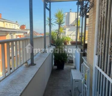 A completare il tutto troviamo un terrazzino di circa 9 mq. da cui si può godere della vista panoramica sulla natura circostante. La propietà si presenta in discrete condizioni e dispone di porta blindata, pavimentazione in parquet, condizionatori, infissi in alluminio con doppio vetro, armadi a muro, ripostigli, tenda da sole e riscaldamento centralizzato con valvole termostatiche. La vista panoramica spazia verso l'insugherata e grazie alla tripla esposizione verso ovest gode di una buona luminosità. Infine, la posizione strategica dell'immobile lo rende comodo a tutti i principali servizi quali negozi e mezzi pubblici.