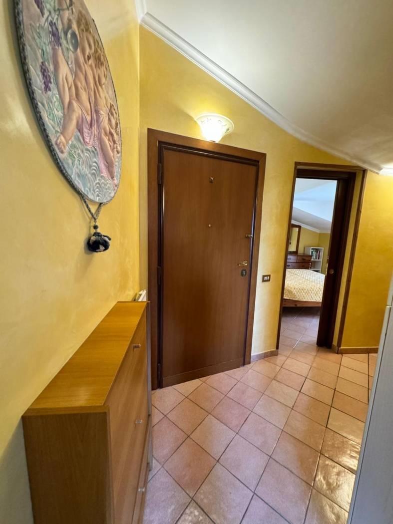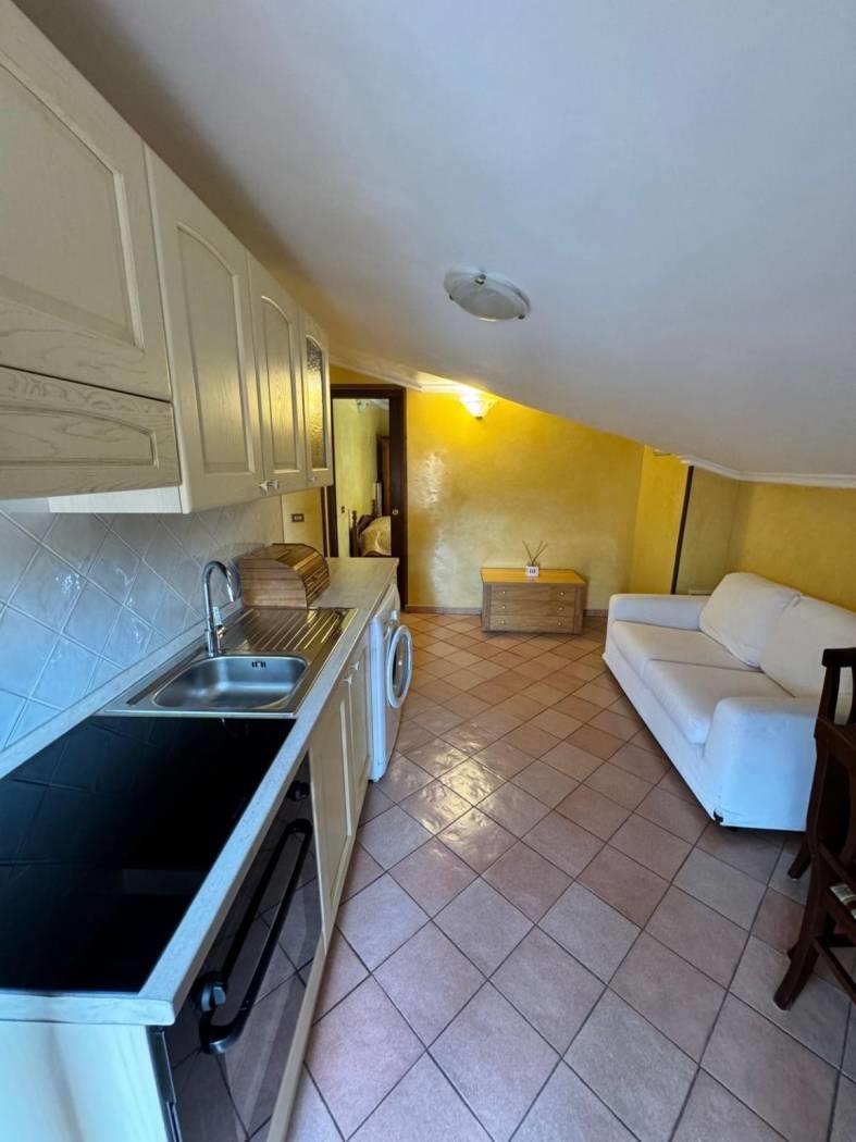 Palazzina in cortina con ascensore, proponiamo in vendita una mansarda ad uso abitativo. Questa affascinante mansarda è composta da un saloncino con angolo cottura a vista con piano a induzionea, una camera da letto, un bagno e due terrazzini che offrono una vista panoramica. Completa la proprietà un ripostiglio sottotetto ideale per ottimizzare gli spazi e posto auto scoperto. L'immobile viene venduto parzialmente arredato.