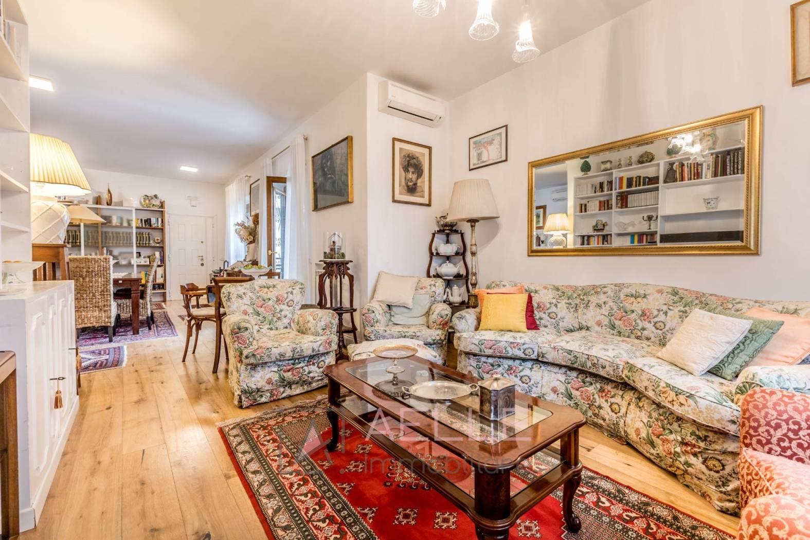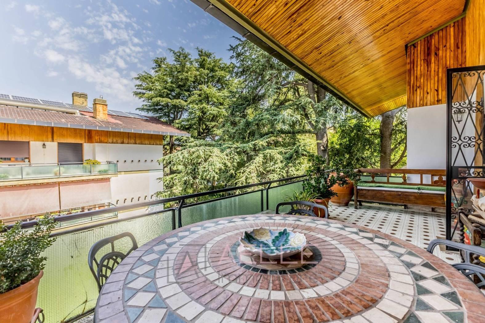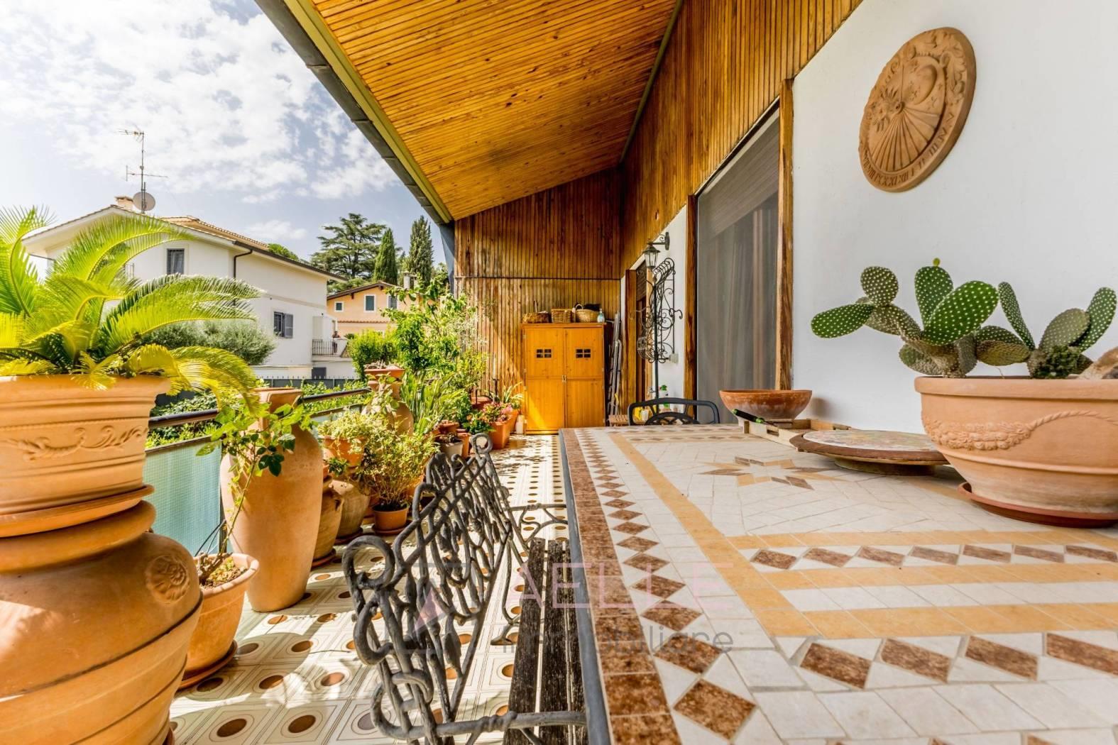Salone doppio suddiviso in soggiorno e sala da pranzo con accesso alla terrazza di 37mq, cucina separata e camera matrimoniale con accesso al secondo terrazzo di 20mq ed un bagno finestrato con box doccia.