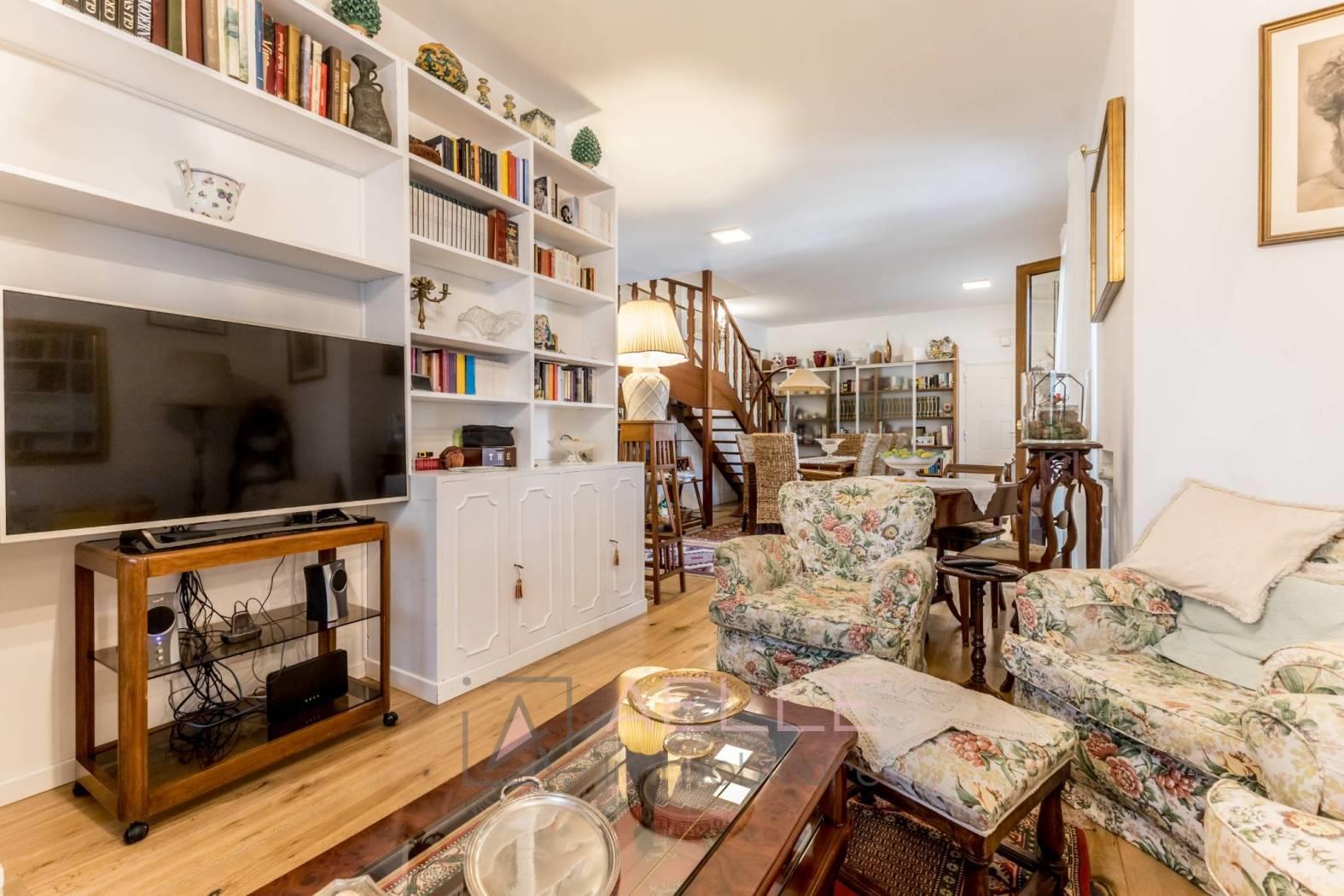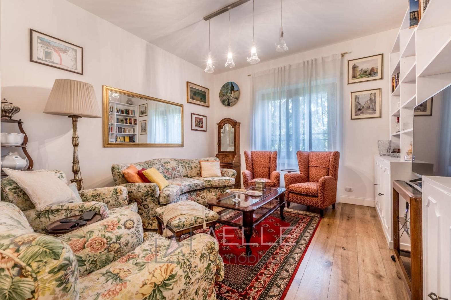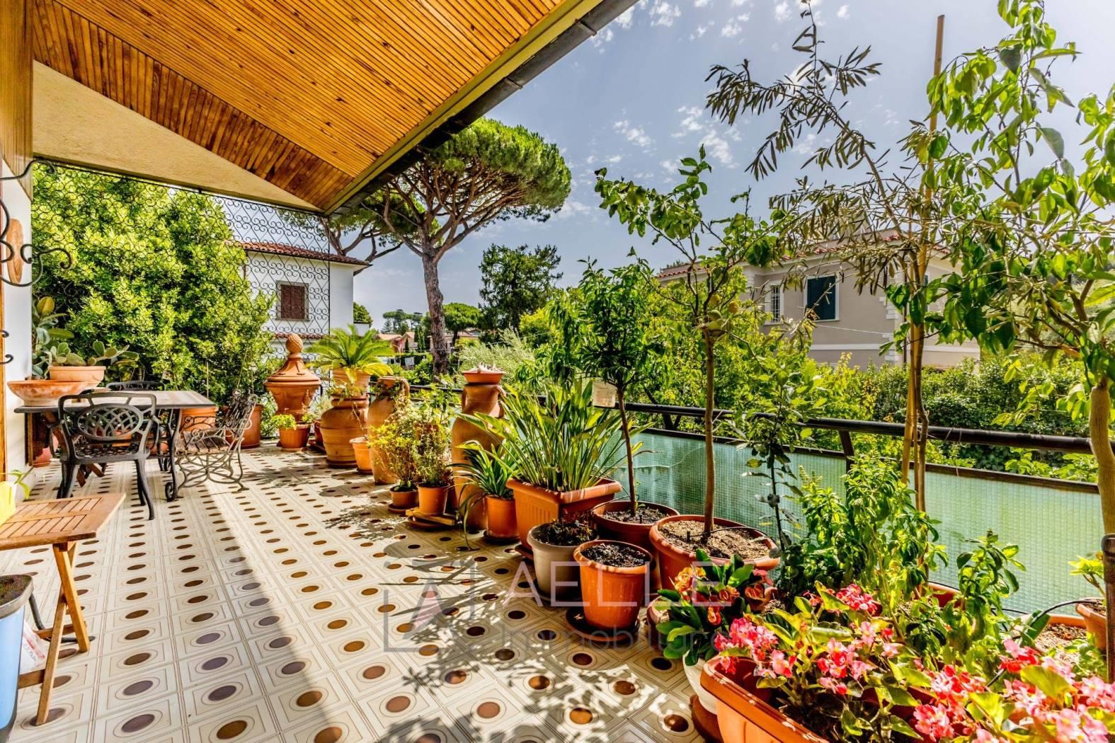 Salone doppio suddiviso in soggiorno e sala da pranzo con accesso alla terrazza di 37mq, cucina separata e camera matrimoniale con accesso al secondo terrazzo di 20mq ed un bagno finestrato con box doccia.