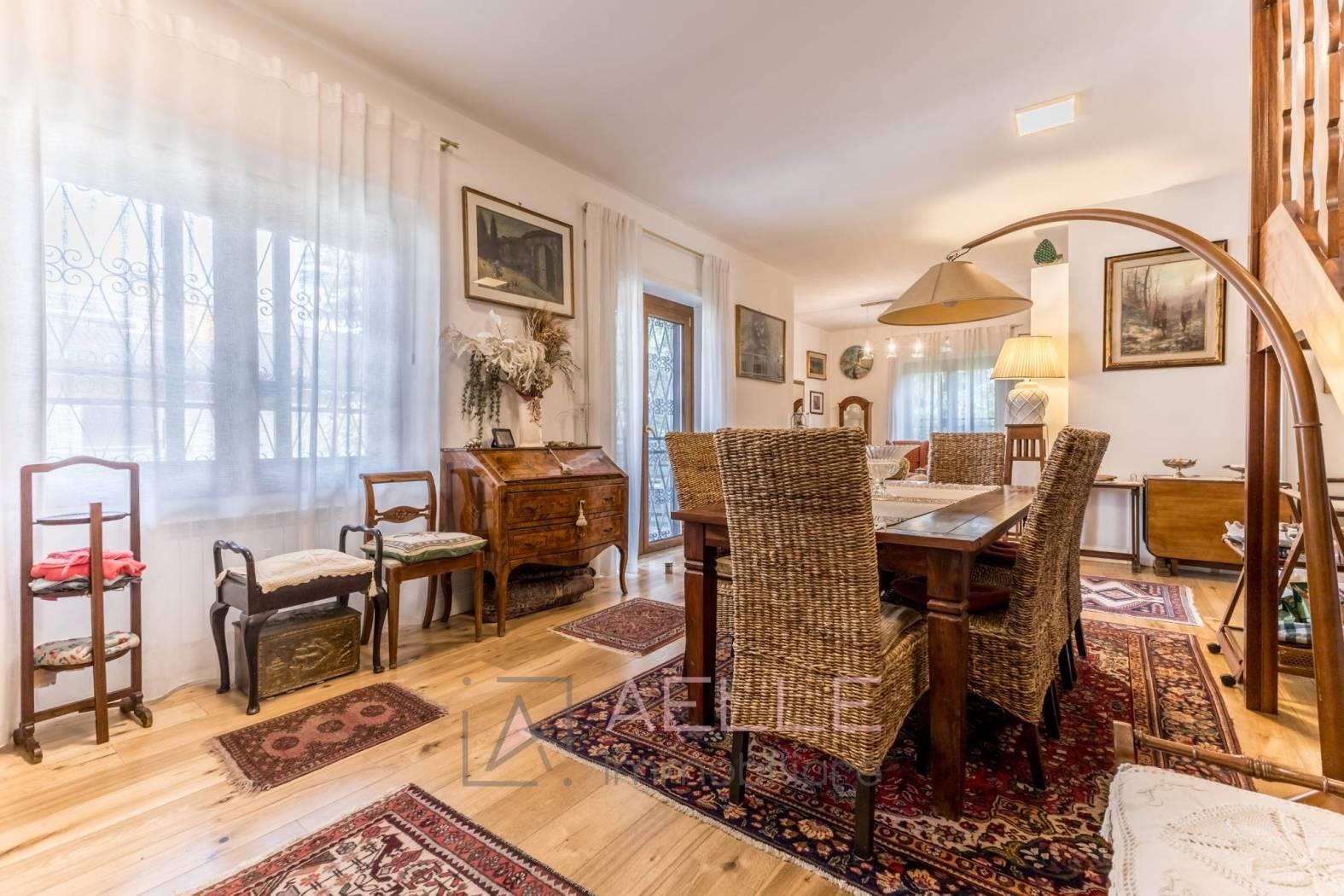 Ripostiglio in cucina, armadi a muro in vari ambienti, pompa di calore DAIKIN caldo/freddo, 8 split; 11 infissi in PVC, isolanti, realizzati da primaria industria del settore; Impianto fotovoltaico: n.12 pannelli per una potenza di 3 KW con batteria di accumulo da 6 KW espandibile; n.10 termosifoni, ultimo modello in alluminio massima resa termica certificata (riscaldamento centralizzato); tutti gli ambienti del piano superiore godono cappotto termico a soffitto. Posto auto coperto condominiale assegnato.