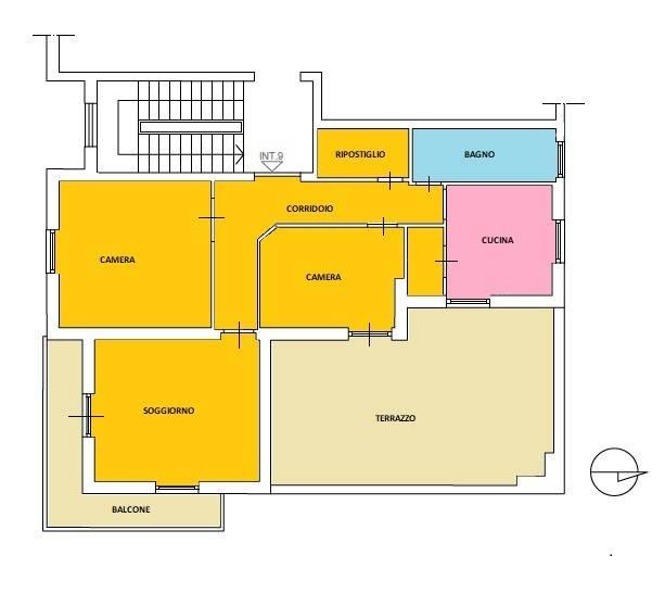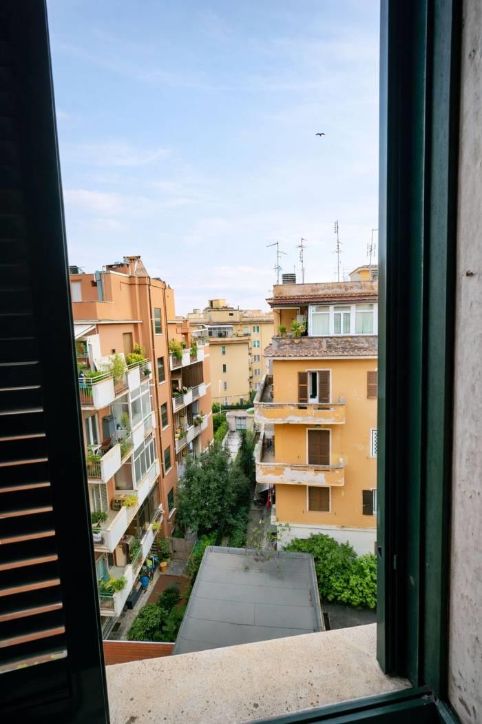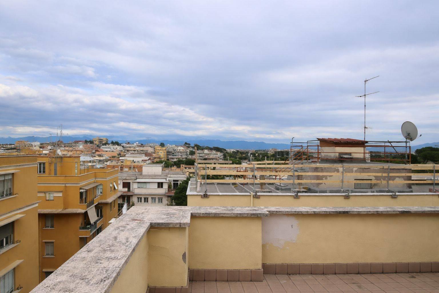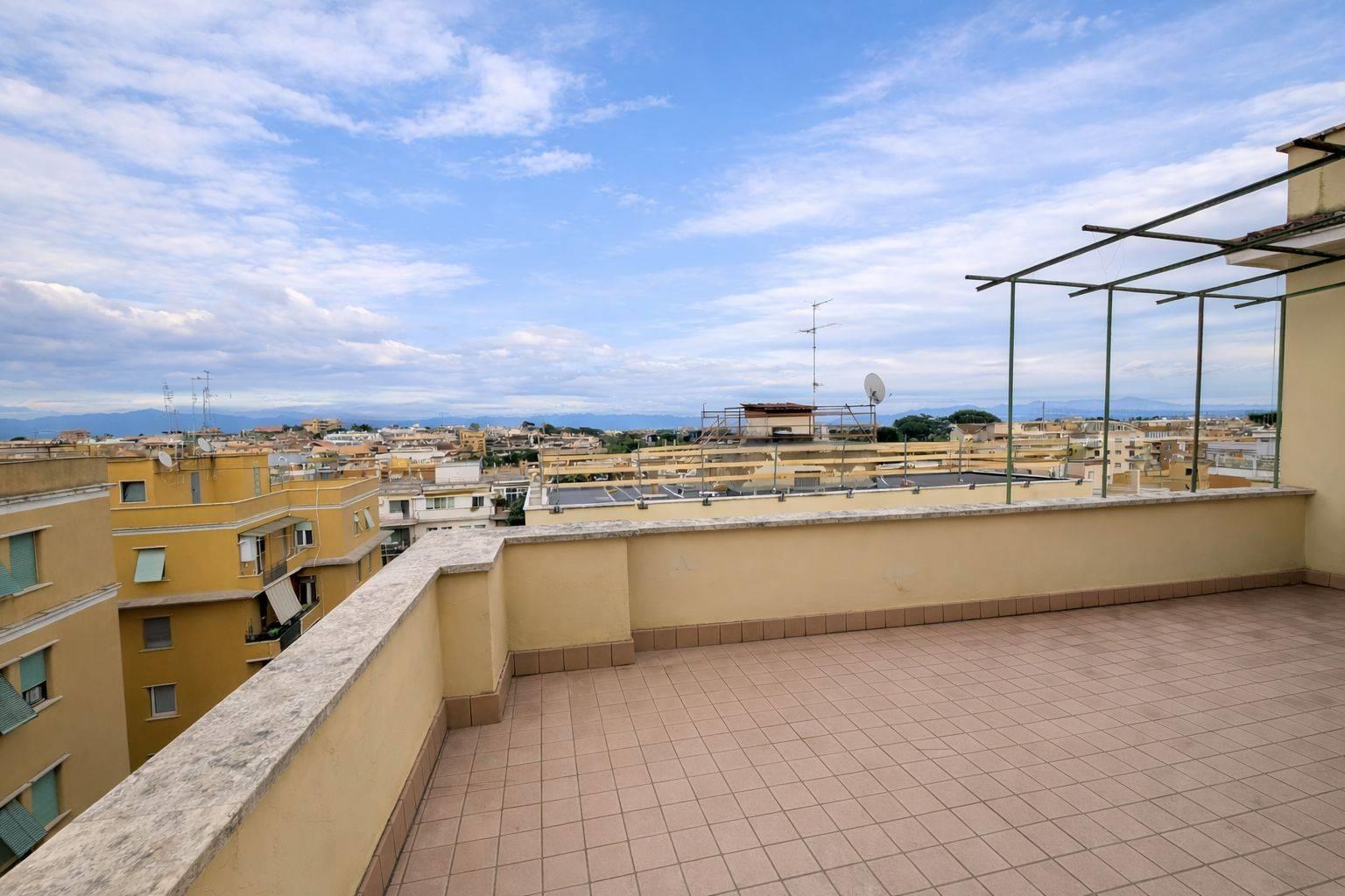 Caratteristica dell'appartamento è l'ampia terrazza panoramica con vista aperta su Roma ed è composto da soggiorno, due camere da letto, bagno e ripostiglio, balcone e terrazzo. L'immobile è completamente da ristrutturare e rappresenta un’interessante opportunità per chi cerca un appartamento a Roma da personalizzare. La tripla esposizione garantisce elevata luminosità e ottima ventilazione naturale.