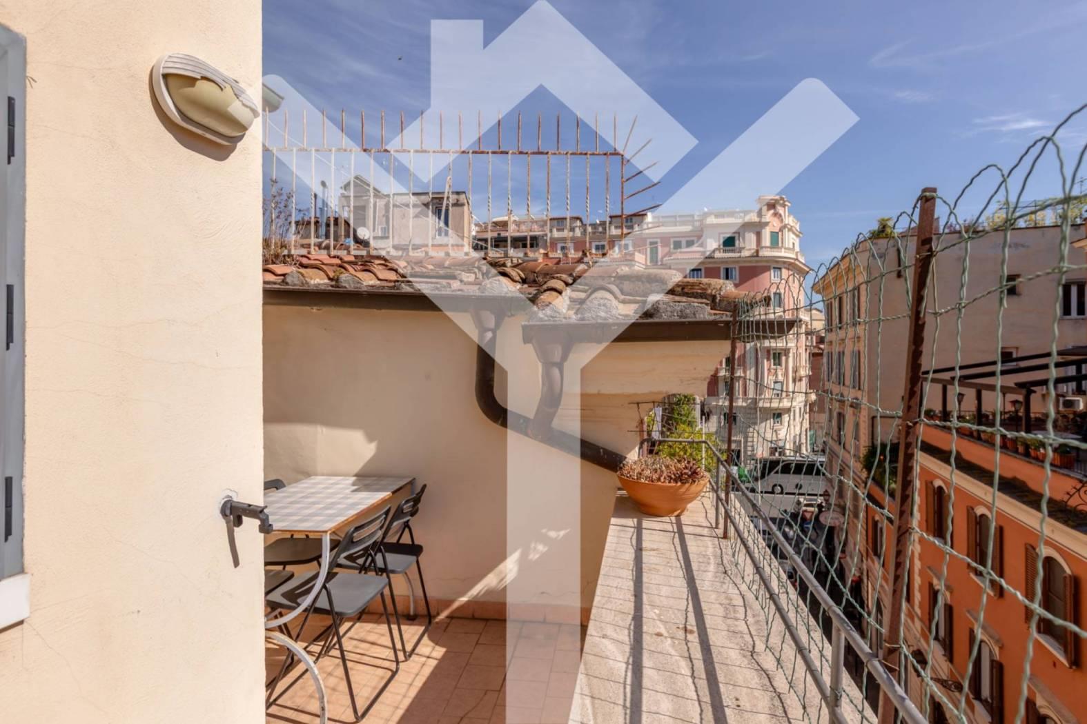 L 'attico in vendita, con una superficie totale di 90 metri quadrati e una superficie calpestabile di 70 metri quadrati, attualmente è composto da 5 locali, di cui 2 camere da letto e 2 servizi. Il salone dell'appartamento, di forma rettangolare, racchiude in se anche una cucina a vista e un angolo/zona pranzo. Questa zona living ha una porta finestra che conduce nella piccola terrazza che, sul lato destro, si dilunga e prende la forma di un lungo balcone. Una vista mozzafiato si apre immediatamente al visitatore sulla città, mentre dalle finestre di una delle due camere da letto si può ammirare la facciata di delicata bellezza della chiesa di Santa Maria Prassede. Lo stato ottimo di conservazione, grazie alla recente ristrutturazione con materiali di qualità, la coniugazione del design moderno con i dettagli originali dell'edificio, gli arredi deliziosi, aggiungono un tocco di modernità e funzionalità allo spazio abitativo. Spese condominiali di solo 100€ mensili.