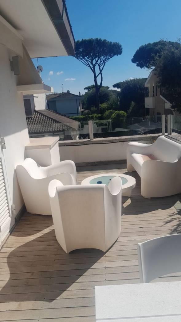 Proponiamo in vendita a Fregene, adiacente Via Portovenere, un attico totalmente ristrutturato con design moderno,
