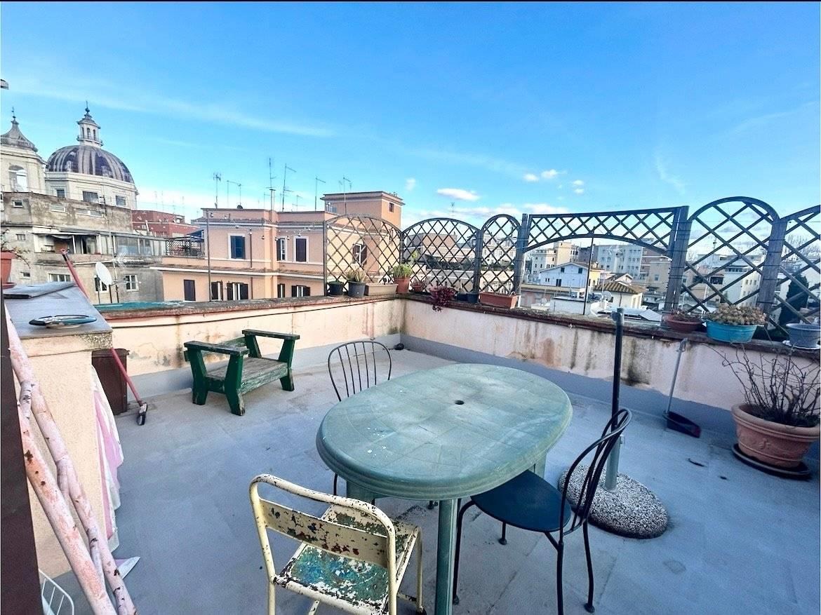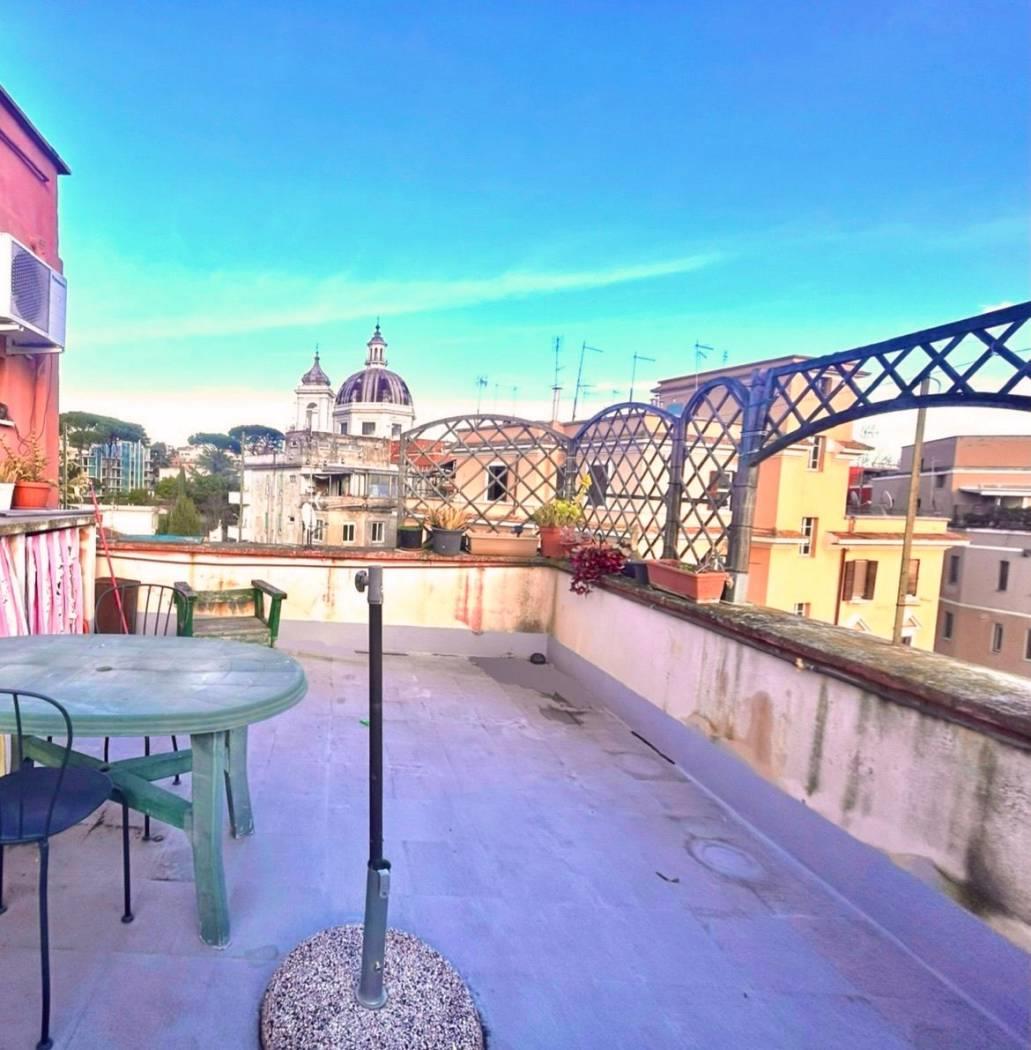 RARA OPPORTUNITA' - PONTE MILVIO - Più precisamente in via Prati della Farnesina 19, in zona ben servita da tutti servizi di prima necessità, proponiamo la vendita di un attico, in stabile di solo 4 immobili (Il fabbricato ha solo 2 proprietari in tutto) ed unico al piano, con affacci aperti, dominanti rispetto ai fabbricati circostanti e panoramici. NO ASCENSORE!! Internamente l'immobile è composto da ampia zona d'ingresso, camera da letto, un servizio e zona giorno con angolo cottura, con accesso su terrazzo esclusivo.