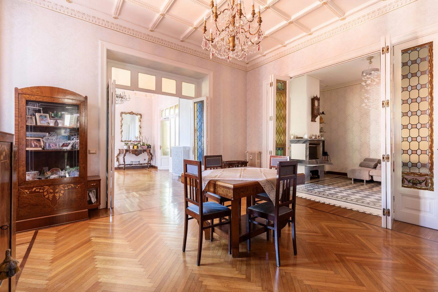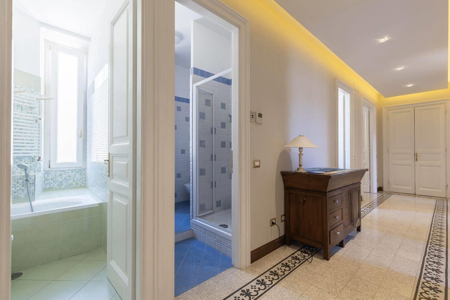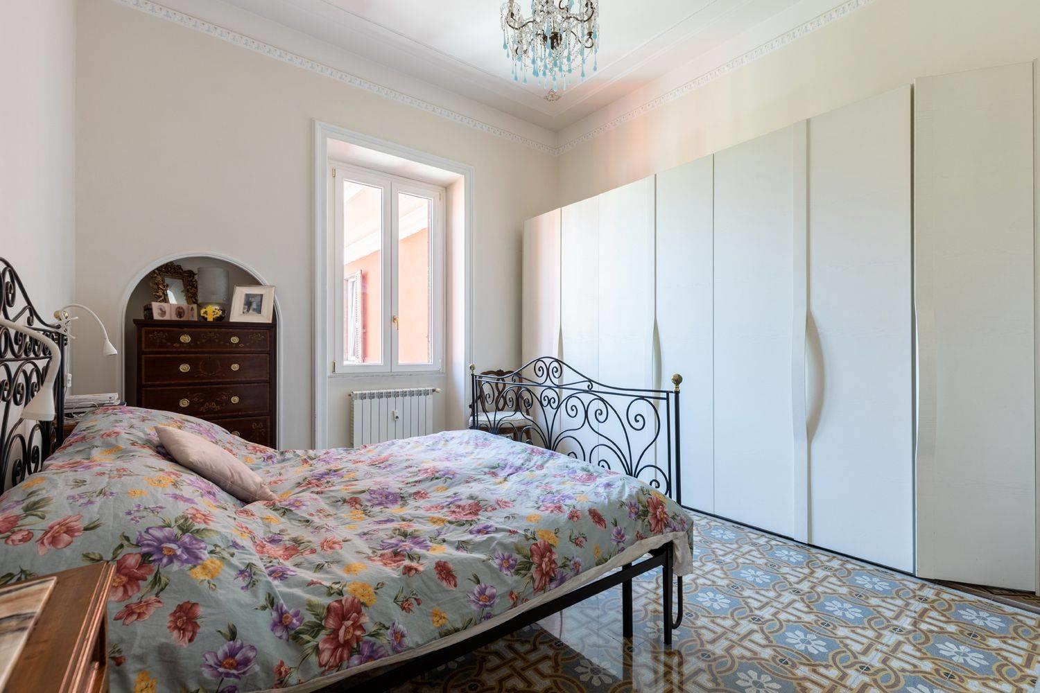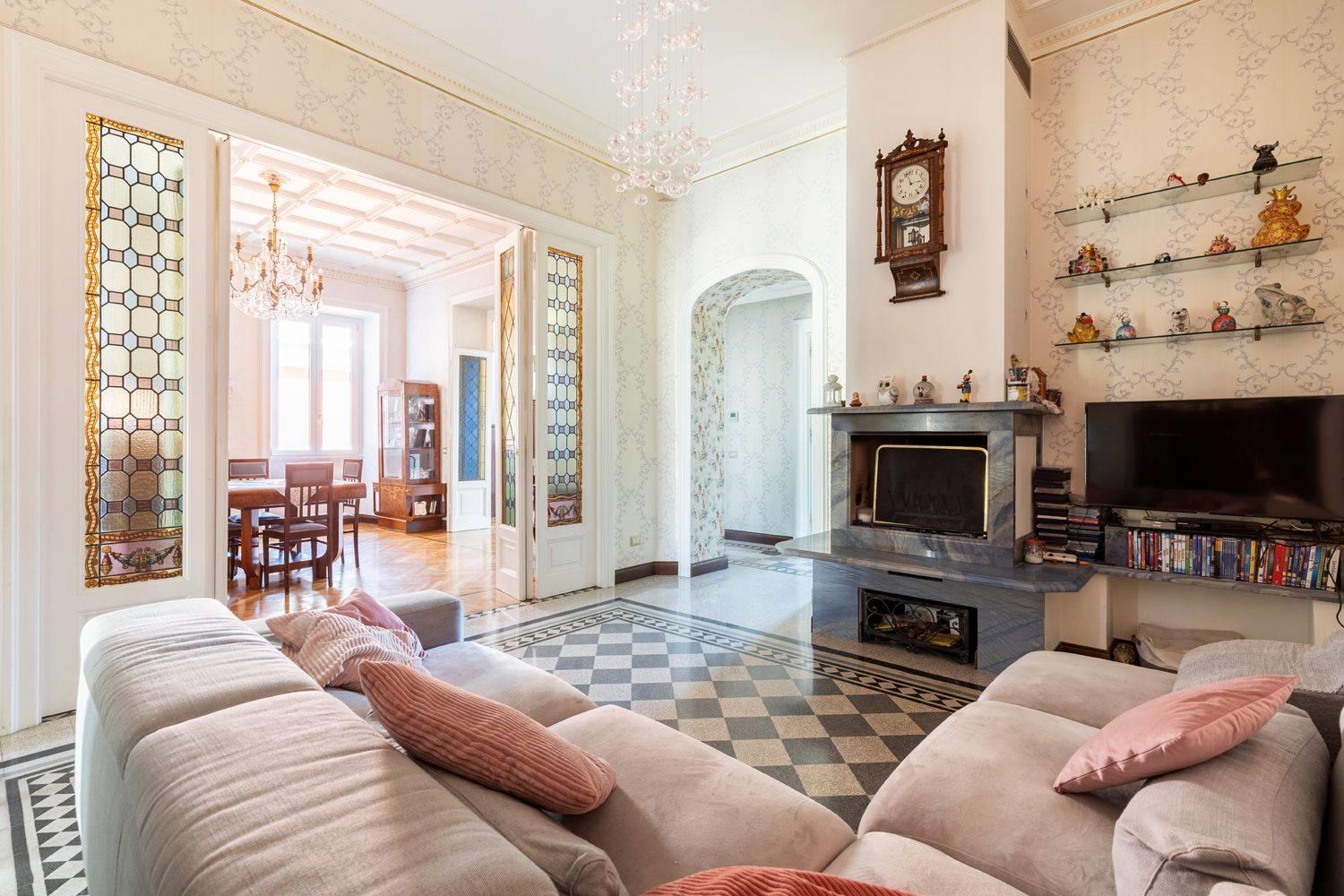 PRATI - Ad. P.ZZA MAZZINI. In un palazzo d'epoca dei primi del '900 da poco restaurato interamente, in contesto signorile ed elegante con servizio di portineria e ascensore, proponiamo in vendita questo bellissimo appartamento posto al 5° ed ultimo piano, molto luminoso e di alta rappresentanza. L'immobile si compone di doppi ingressi (attualmente uno è stato chiuso dall'interno); la zona giorno, con piacevoli affacci su Via Oslavia, conta attualmente 4 grandi ambienti da adibire a seconda delle esigenze (camera da pranzo, studio ecc.); tramite due corridoi ci si collega alla zona notte attualmente composta di 5 camere da letto padronali, di cui due molto ampie e due più piccole, servite da tre bagni, e la quinta può essere anche destinata al servizio; la cucina posizionata nei pressi dell'ingresso principale è abitabile con un ampio ripostiglio e un balcone con affaccio sul cortile interno. L'appartamento è stato ristrutturato recentemente e sono stati volutamente mantenuti e restaurati i pavimenti dell'epoca e altri dettagli, inoltre è stato installato un impianto di condizionamento centralizzato con appositi controsoffitti.