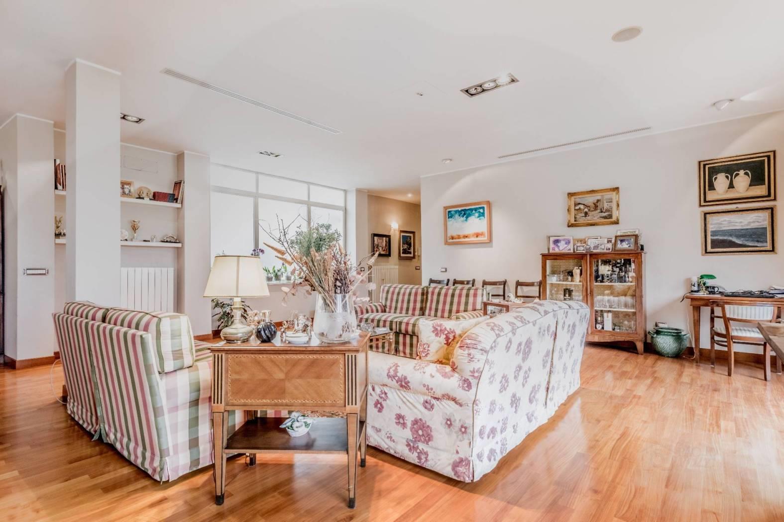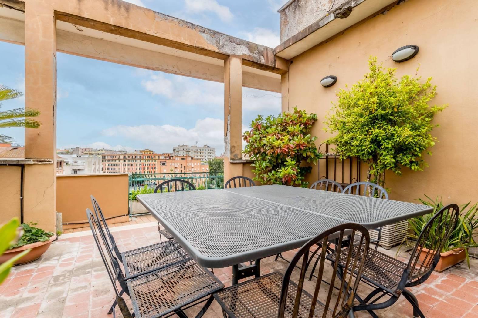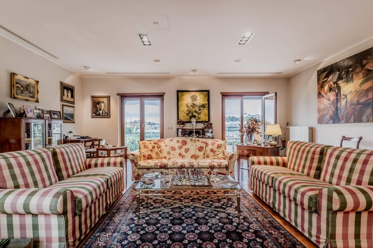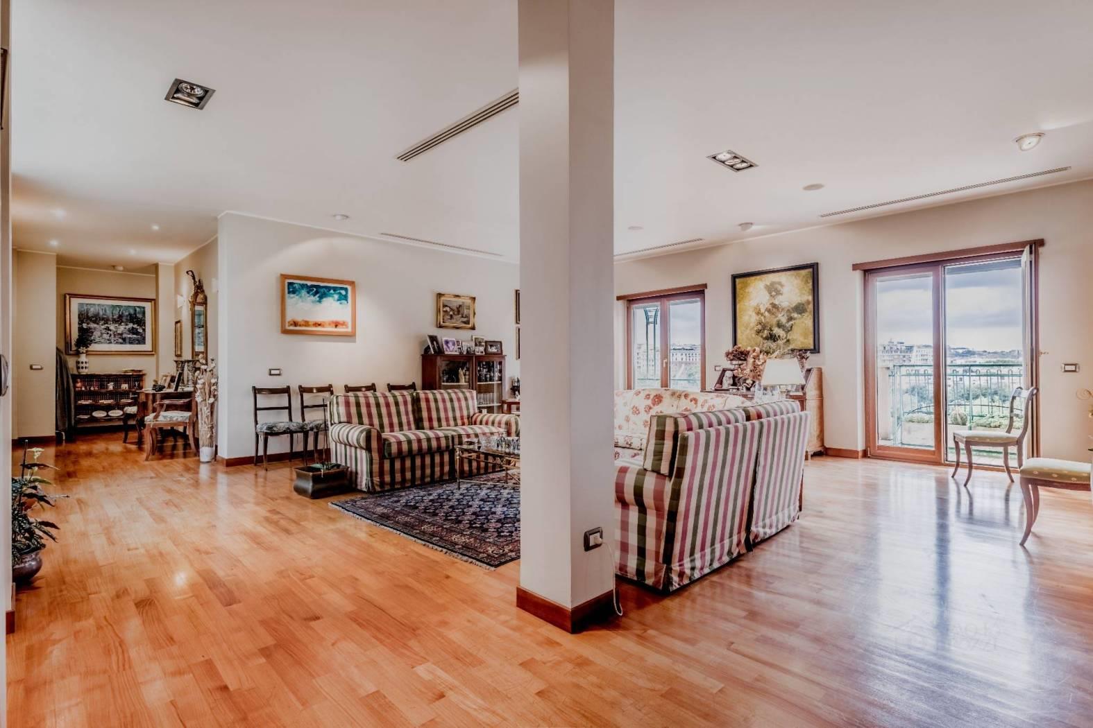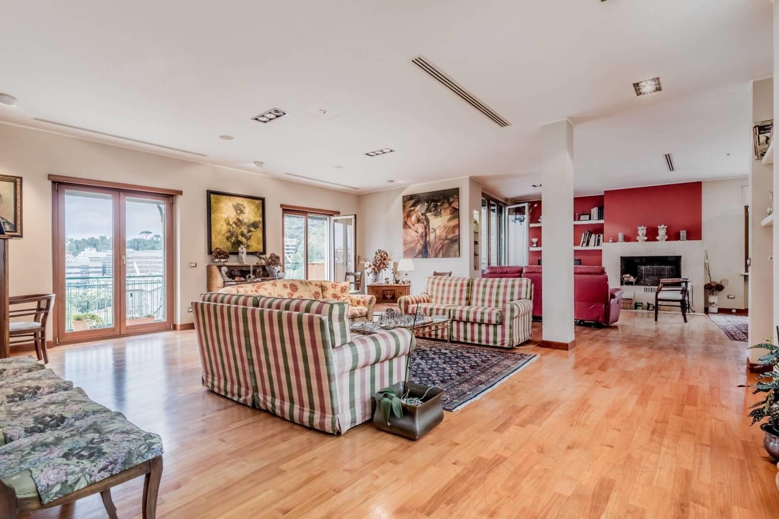 PRATI DELLA VITTORIA, in via Teulada, all'interno di un palazzo in prossima ristrutturazione, proponiamo un PRESTIGIOSO ATTICO (INTERAMENTE DISPOSTO SU UNICO LIVELLO) LUMINOSISSIMO DI 281 MQ commerciali, DOTATO DI AFFACCI PANORAMICI in parte sulla CUPOLA DI S. PIETRO E SU MONTE MARIO. L'appartamento di 265 mq interni è stato ristrutturato nel 2008 (15 anni fa) ed è composto da: Ingresso, salone di 100 mq ca. con splendido camino, cucina abitabile, quattro ampie camere da letto (di cui una dotata di cabina armadio), camera per la servitù, tre bagni, lavanderia, ripostiglio, tre splendidi terrazzi dotati di affacci panoramici e tre balconi (per una metratura esterna di 110 mq ca.) La proprietà è facilmente divisibile in due unità abitative (essendo presenti due impianti di riscaldamento autonomi, due contatori di acqua ed un impianto elettrico facilmente separabile) inoltre è dotata di impianto di aria condizionata, infissi in doppio vetro/PVC (ad eccezione di quelli del salone che internamente sono rivestiti in legno), serrande elettriche ed una tripla esposizione SUD, EST, OVEST, che ne caratterizza la luminosità. Completano la proprietà due comode soffitte (rispettivamente di 8 mq l'una e 5 mq l'altra). L'immobile si trova nelle immediate vicinanze del Tribunale P.le Clodio e di fronte alla Sede Rai e all'ufficio del Giudice di Pace. Si trovano nelle immediate vicinanze scuole e servizi adatti ad ogni necessità. Si trova sotto casa un parcheggio a pagamento con possibilità di abbonamenti mensili. Le fermate metro Lepanto ed Ottaviano si trovano a ca. 2 km di distanza. Prezzo richiesto € 1.680.000