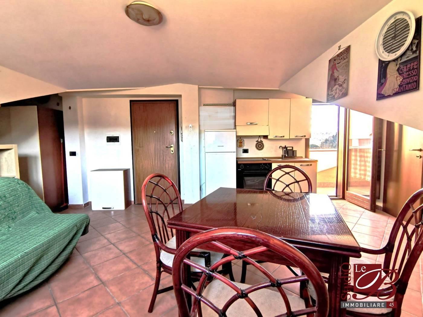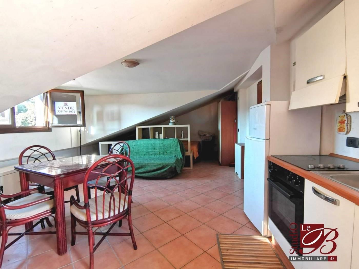 Soffitta di mq 40 (categoria C2) posto al 4° piano e ampio box auto di 15 mq con ascensore diretto ai piani. Unico ambiente composto da zona giorno/notte, bagno, balcone. Aria condizionata caldo/freddo, infissi doppi vetri, portoncino blindato.