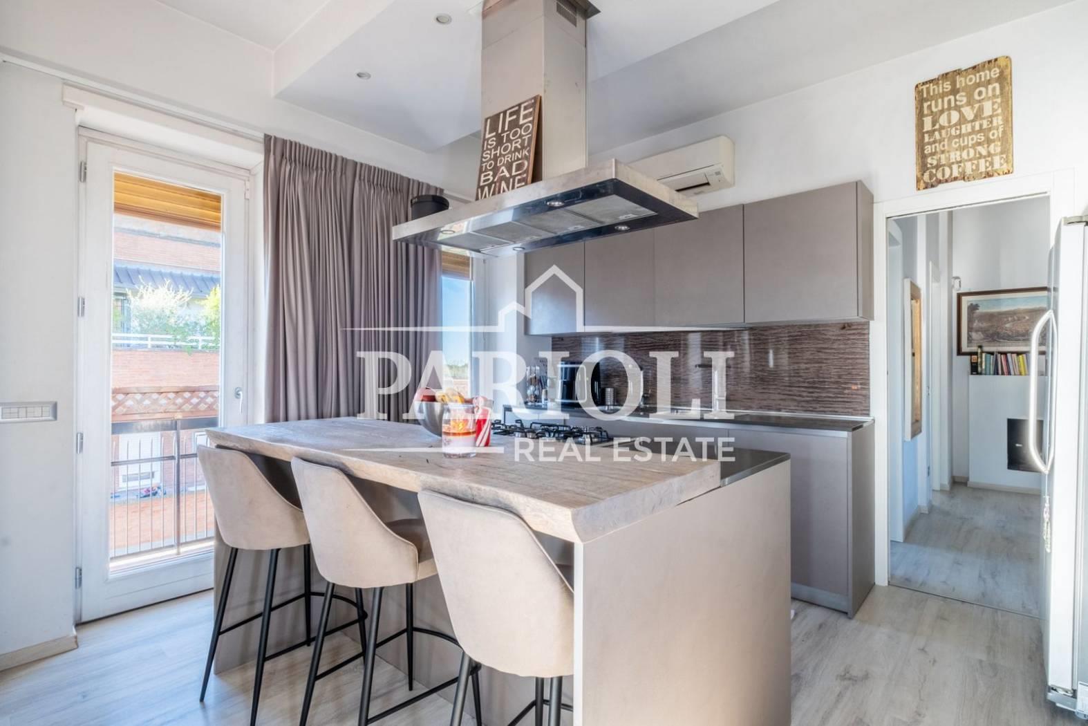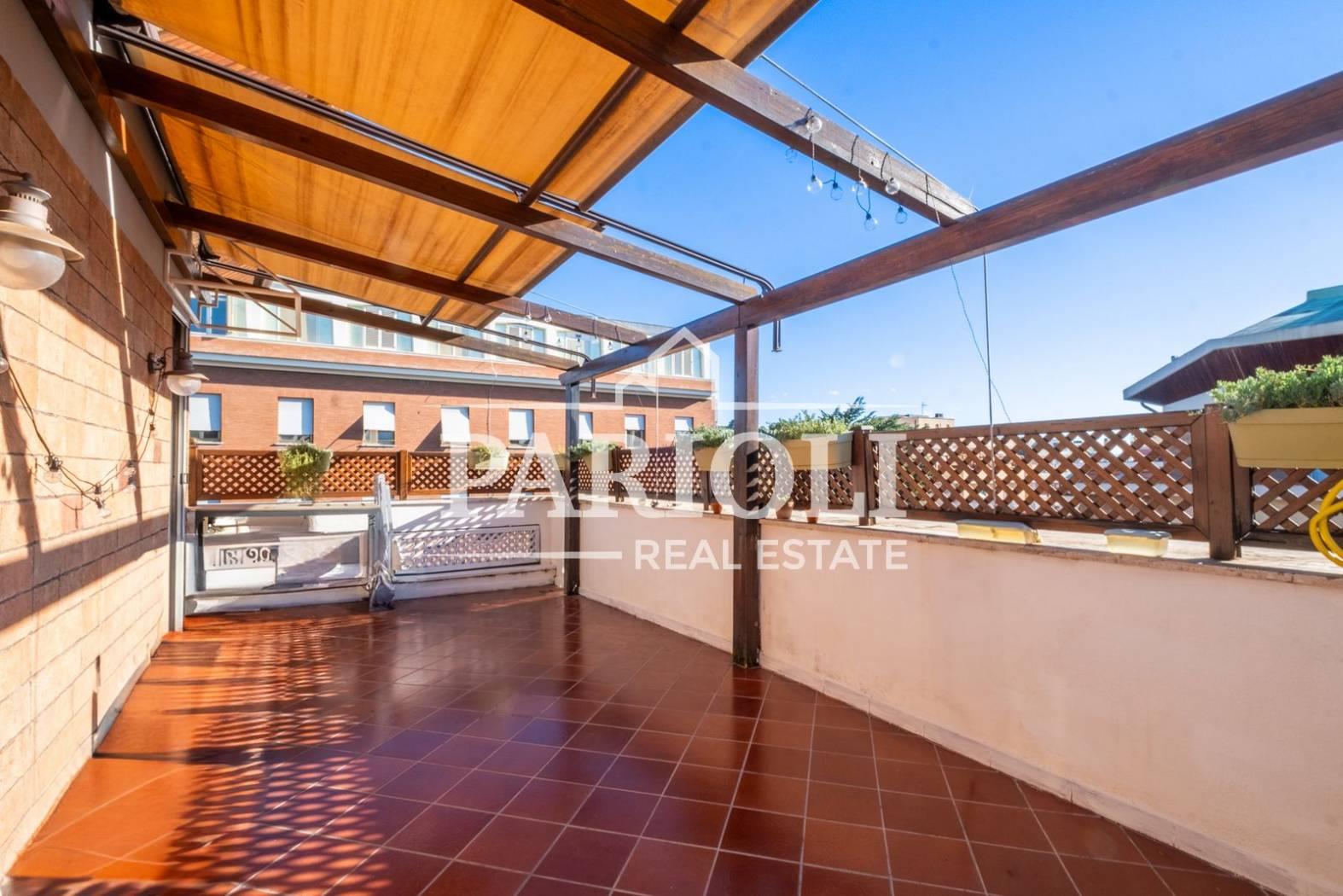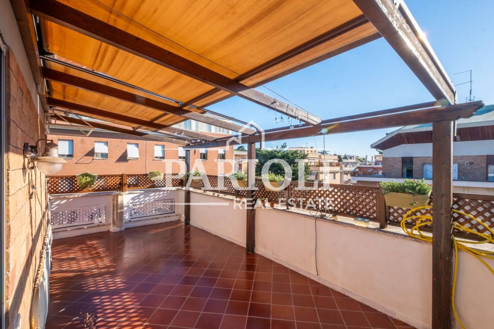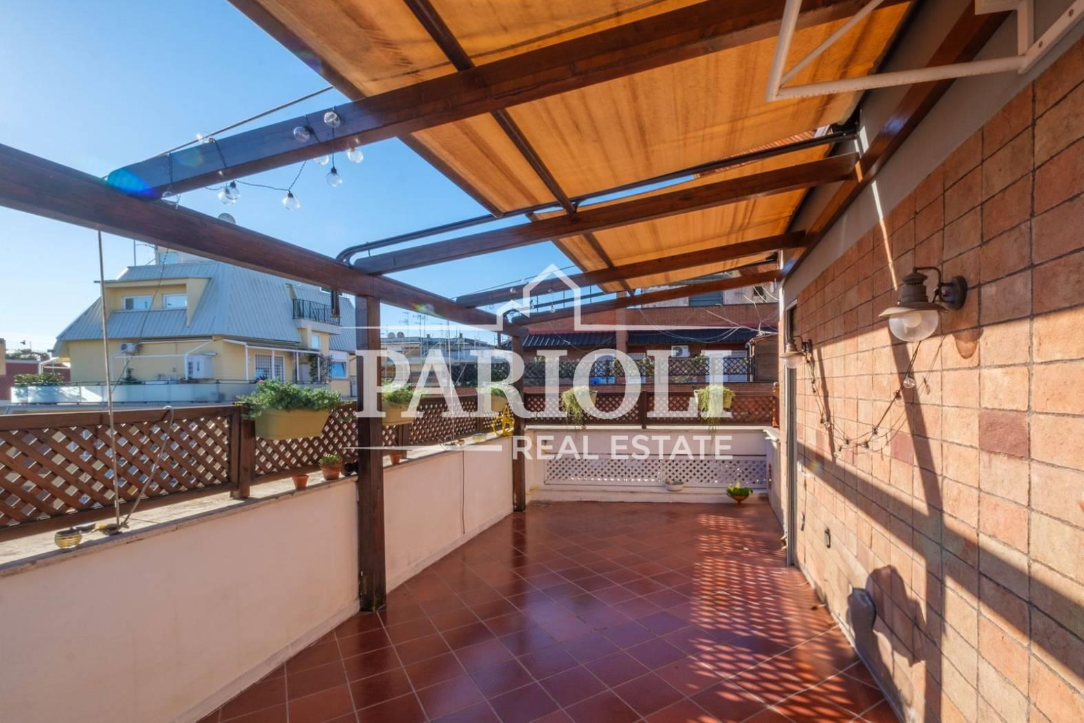 VENDUTO - In raffinato contesto residenziale a pochi passi da Villa Pamphili e tutti i servizi, proponiamo la vendita di un rifinitissimo Attico e Superattico composti da: Piano Attico – salone doppio con elegante e moderna cucina con isola a vista, una deliziosa camera con camino ideale come zona studio, lettura, tv oppure zona relax dalla quale si accede alle due camere da letto ed al servizio, una confortevole terrazza di ca. 35 mq con copertura apribile ed un balcone ai quali si accede dal salone. Attraverso una comoda scala interna si accede al piano Superattico composto da: soggiorno, un’incantevole camera da letto con vasca idromassaggio en suite, cabine armadio e servizio. L’immobile, unico al piano, si presenta completamente e finemente ristrutturato con materiali di pregio e viene venduto con la cucina completa di arredi ed elettrodomestici. Aria condizionata, videocitofono, impianto di allarme. Completa la proprietà un comodo posto auto coperto. Le presenti informazioni e planimetrie sono puramente indicative e non costituiscono elementi contrattuali. Per info: Parioli Real Estate - Via F. Siacci n. 15 - Tel. 06.94533540 SOLO PER QUESTO MESE LA NOSTRA AGENZIA OFFRE UN SERVIZIO DI VALUTAZIONE GRATUITA E SENZA IMPEGNO.