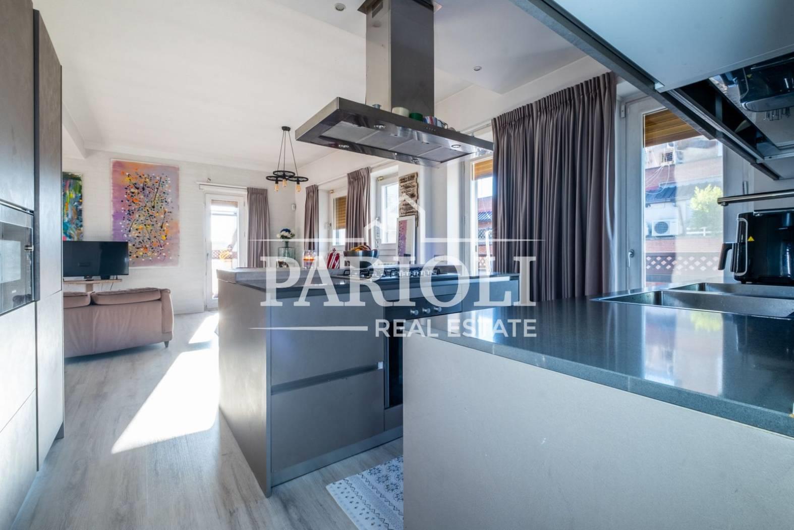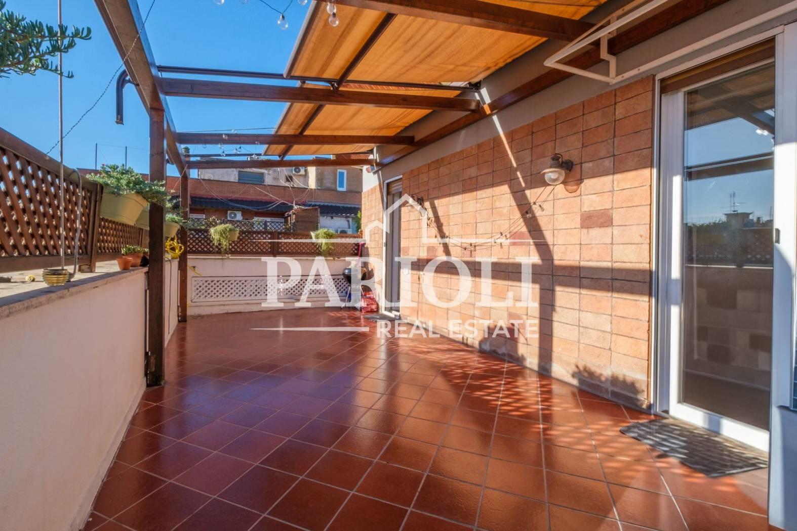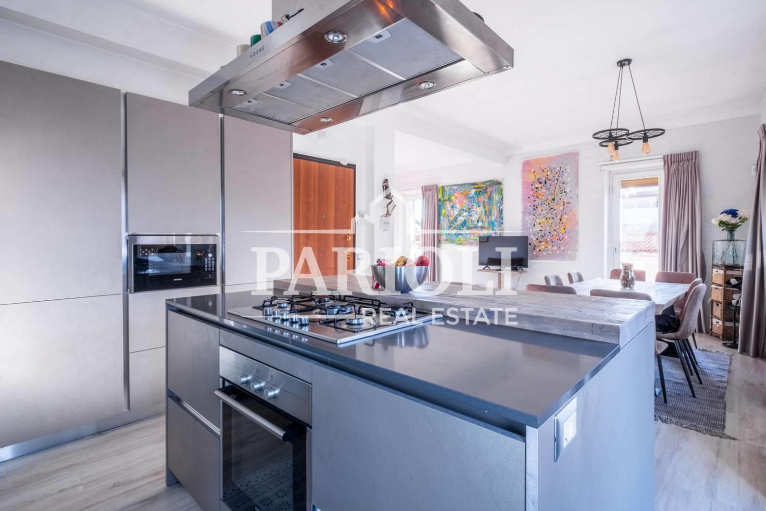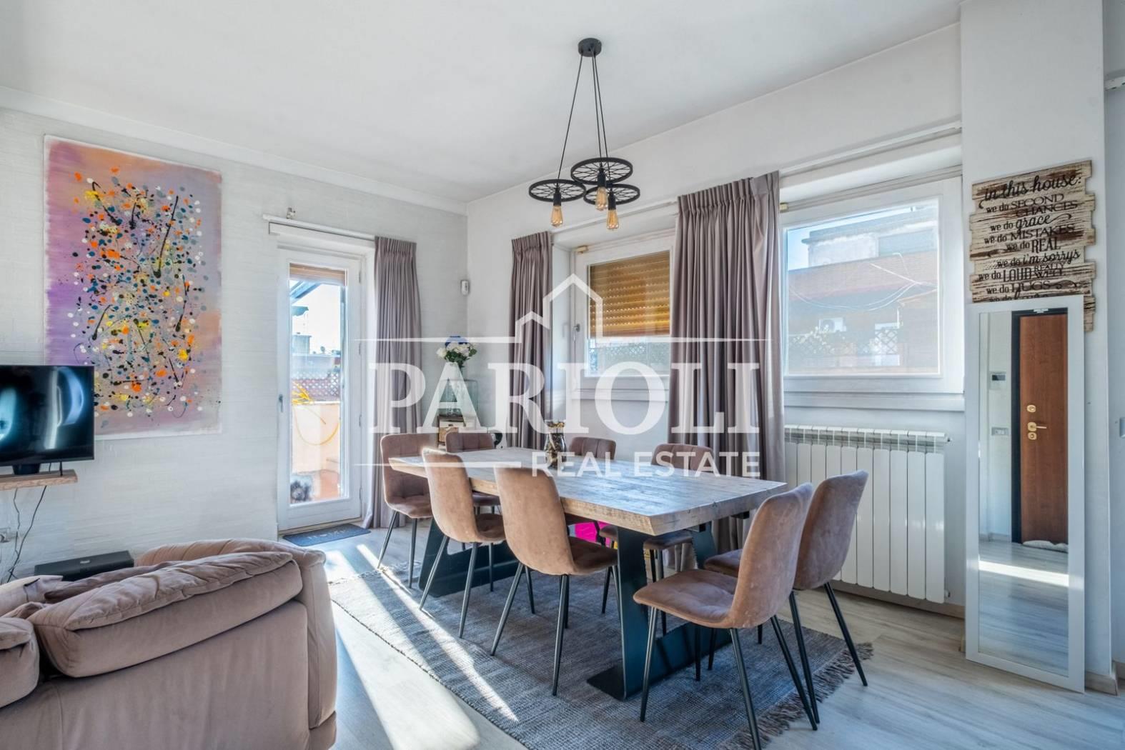 VENDUTO - In raffinato contesto residenziale a pochi passi da Villa Pamphili e tutti i servizi, proponiamo la vendita di un rifinitissimo Attico e Superattico composti da: Piano Attico – salone doppio con elegante e moderna cucina con isola a vista, una deliziosa camera con camino ideale come zona studio, lettura, tv oppure zona relax dalla quale si accede alle due camere da letto ed al servizio, una confortevole terrazza di ca. 35 mq con copertura apribile ed un balcone ai quali si accede dal salone. Attraverso una comoda scala interna si accede al piano Superattico composto da: soggiorno, un’incantevole camera da letto con vasca idromassaggio en suite, cabine armadio e servizio. L’immobile, unico al piano, si presenta completamente e finemente ristrutturato con materiali di pregio e viene venduto con la cucina completa di arredi ed elettrodomestici. Aria condizionata, videocitofono, impianto di allarme. Completa la proprietà un comodo posto auto coperto. Le presenti informazioni e planimetrie sono puramente indicative e non costituiscono elementi contrattuali. Per info: Parioli Real Estate - Via F. Siacci n. 15 - Tel. 06.94533540 SOLO PER QUESTO MESE LA NOSTRA AGENZIA OFFRE UN SERVIZIO DI VALUTAZIONE GRATUITA E SENZA IMPEGNO.
