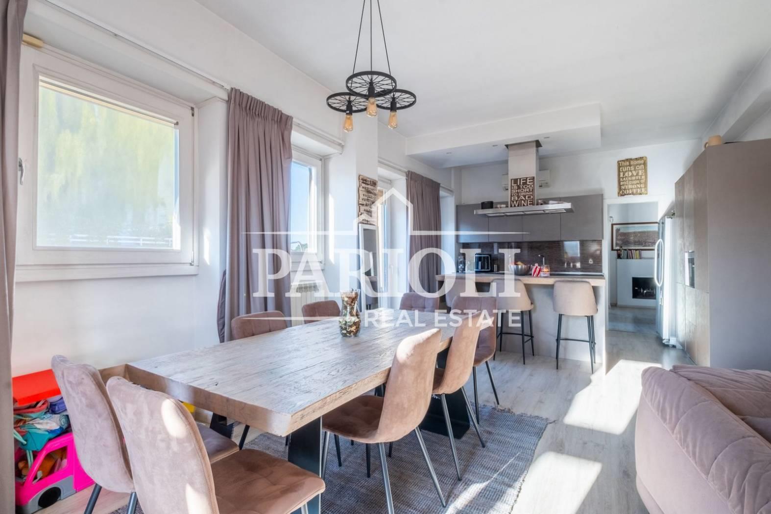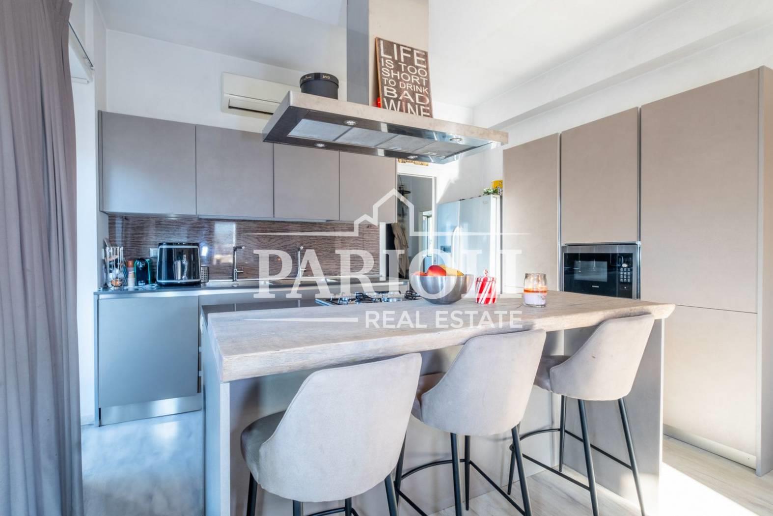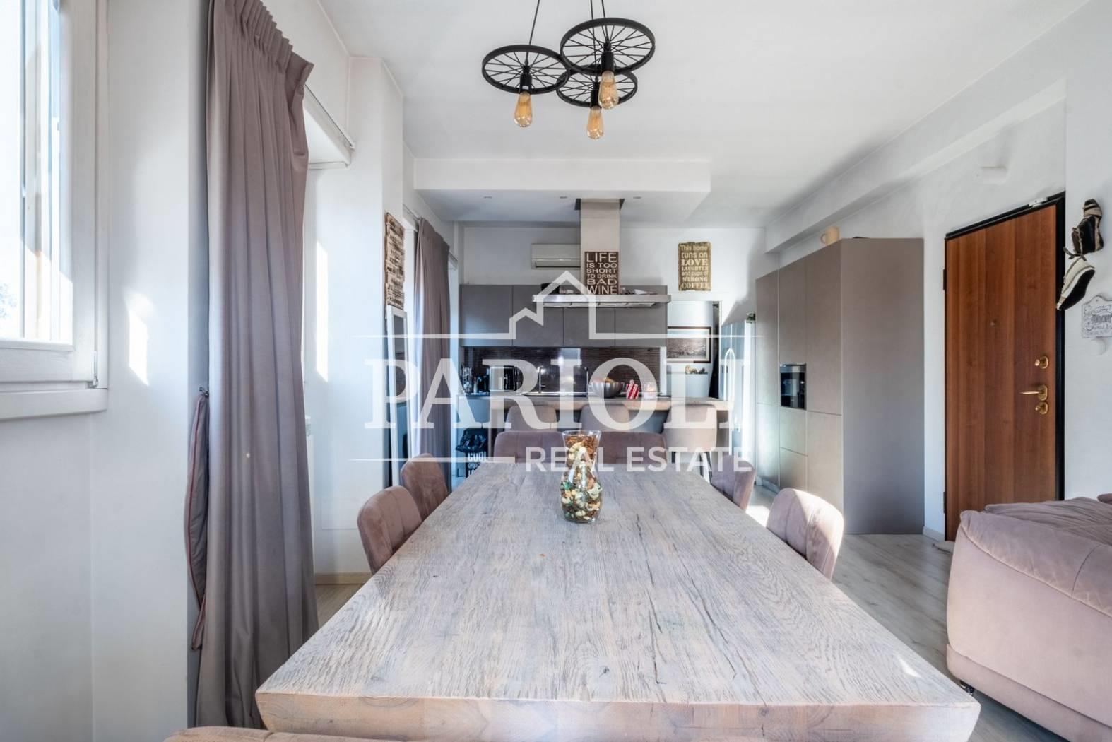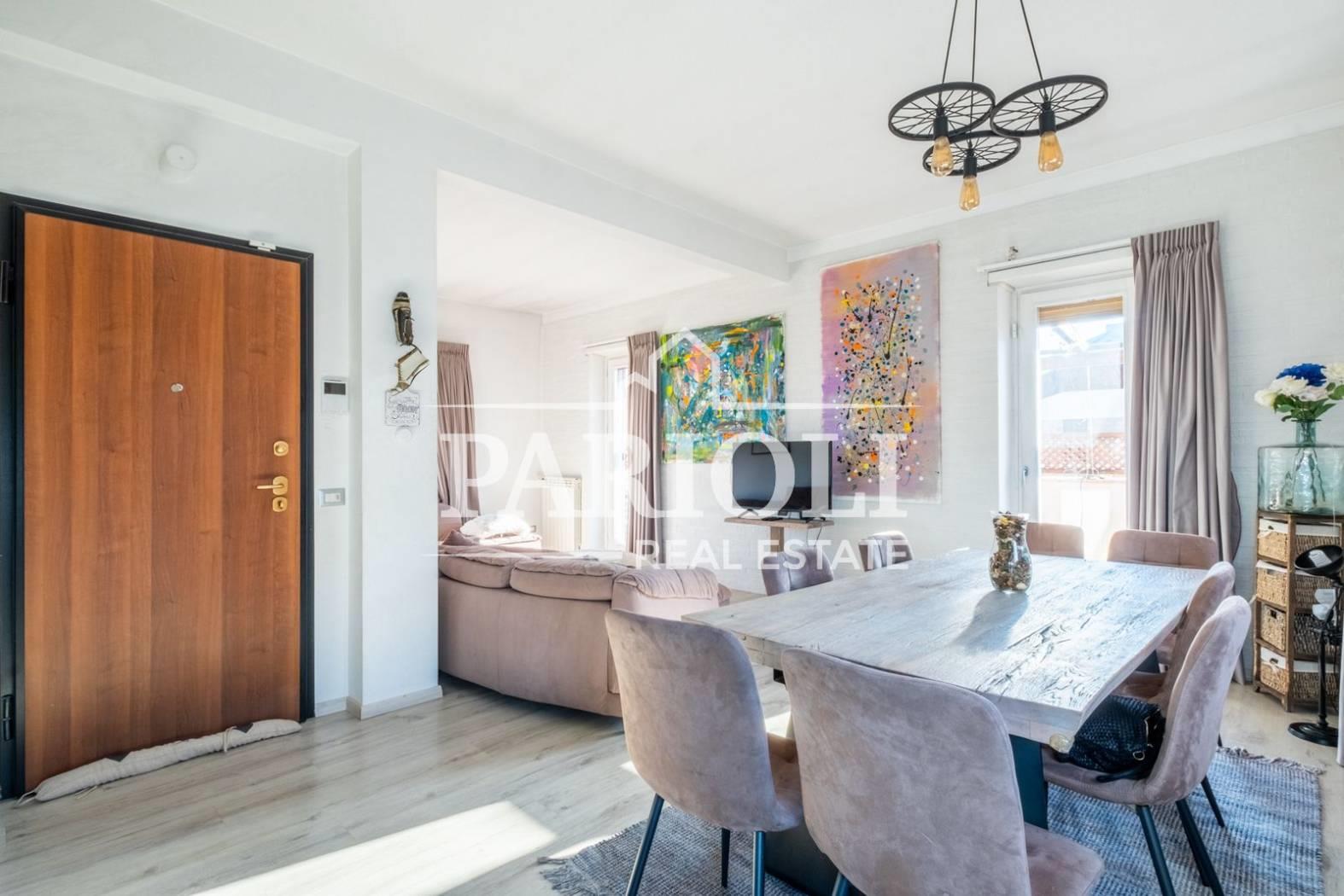 VENDUTO - In raffinato contesto residenziale a pochi passi da Villa Pamphili e tutti i servizi, proponiamo la vendita di un rifinitissimo Attico e Superattico composti da: Piano Attico – salone doppio con elegante e moderna cucina con isola a vista, una deliziosa camera con camino ideale come zona studio, lettura, tv oppure zona relax dalla quale si accede alle due camere da letto ed al servizio, una confortevole terrazza di ca. 35 mq con copertura apribile ed un balcone ai quali si accede dal salone. Attraverso una comoda scala interna si accede al piano Superattico composto da: soggiorno, un’incantevole camera da letto con vasca idromassaggio en suite, cabine armadio e servizio. L’immobile, unico al piano, si presenta completamente e finemente ristrutturato con materiali di pregio e viene venduto con la cucina completa di arredi ed elettrodomestici. Aria condizionata, videocitofono, impianto di allarme. Completa la proprietà un comodo posto auto coperto. Le presenti informazioni e planimetrie sono puramente indicative e non costituiscono elementi contrattuali. Per info: Parioli Real Estate - Via F. Siacci n. 15 - Tel. 06.94533540 SOLO PER QUESTO MESE LA NOSTRA AGENZIA OFFRE UN SERVIZIO DI VALUTAZIONE GRATUITA E SENZA IMPEGNO.