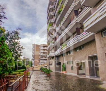 Il trilocale, posto all'ultimo di sette piani, dispone di servizio di ascensore e doppia esposizione esterna. L'immobile è stato totalmente ristrutturato con impianti ed infissi nuovi. L'ingresso e la zona living sono un unico ambiente con disimpegno, due camere da letto, cucina e due bagni. Inoltre, l'immobile dispone di una terrazza, posto auto coperto e cantina con ascensore a livello.