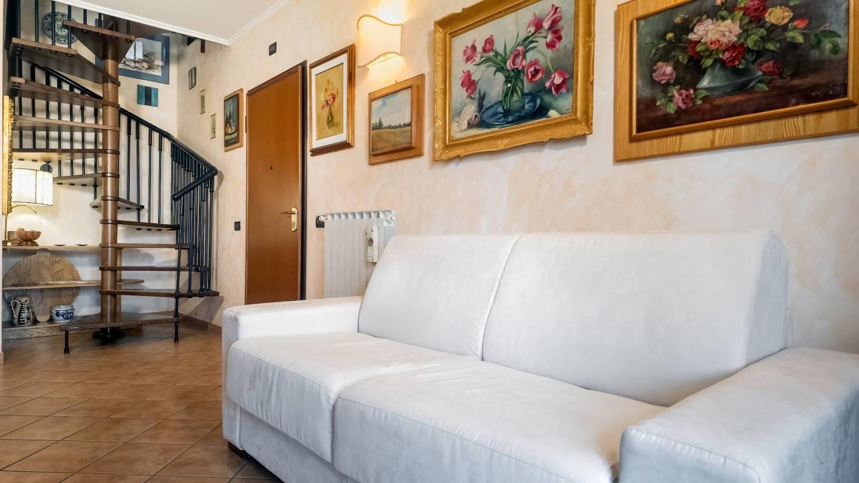 Salendo la comoda scala interna in legno, si raggiunge il piano superiore, interamente dedicato a una grande camera matrimoniale padronale. Questo spazio è pensato come una vera e propria suite, con una comoda cabina armadio che offre ampio spazio per organizzare vestiti e accessori. Il vero punto forte è il terrazzo privato, perfetto per godere appieno della vista panoramica e magari allestire un piccolo salottino esterno. Un bagno en-suite con vasca, ad uso esclusivo della camera, aggiunge un ulteriore livello di comfort e privacy.