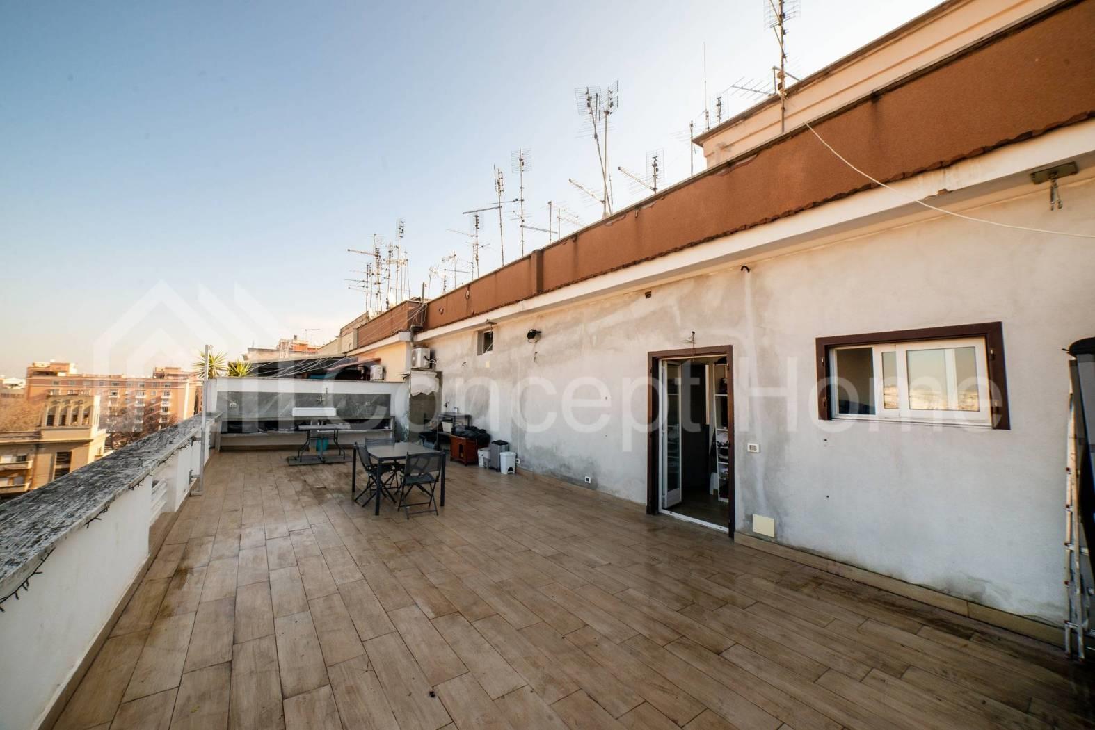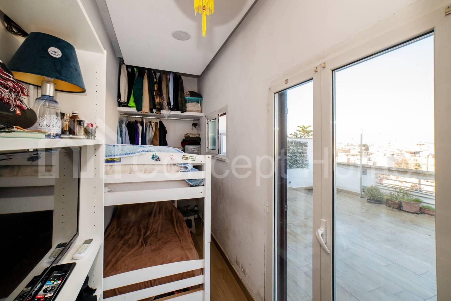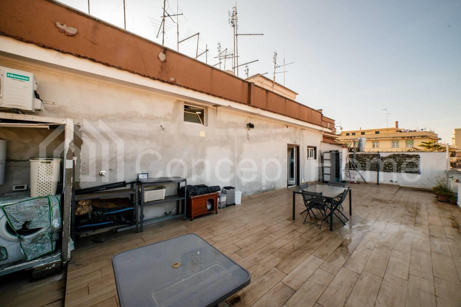 La terrazza rappresenta il vero punto di forza della proprietà, ampia, riservata e perfetta per ricevere clienti o vivere momenti di relax con vista aperta sui tetti di Roma.