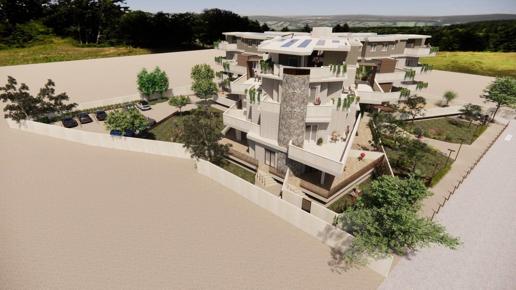 con vista mozzafiato in posizione alta e dominante su via di selva nera tra confort e natura, contemporaneo raffinato ed elegante progetto abitativo di moderna architettura a contatto con l’ambiente naturale realizzato con avanzati criteri antisismici. fabbricato di nuova costruzione 3 piani fuori terra raffinato condominio immerso nel verde. alto risparmio energetico fotovoltaico e solare in classe a4. attico e super attico quadrilocale doppio ingresso posto al piano secondo e terzo mq 130 con ampie terrazze outdoor living di mq 85. l’appartamento si compone di ingresso, ampio soggiorno pranzo, cucina, disimpegno/corridoio, 3 camere letto, tripli servizi, 2 balconi. rifiniture di pregio, alta tecnologia. impianto con produzione autonoma di riscaldamento a pavimento e predisposizione raffreddamento, pompa di calore, il tutto supportato da fonti rinnovabili di energia (fotovoltaico e solare termico autonomo per ogni singola unità abitativa con inverter e predisposizione per batteria accumulo energia autonoma all'appartamento stesso), impianti produzione acqua calda sanitaria alimentata da centrale termica a pompa di calore supportata anch'essa da fonti rinnovabili di energia. ampie vetrate in classe a con avvolgibili elettrici anti infrazione pavimenti e rivestimenti in gres porcellanati scelti tra le eccellenze del made in italy. euro 410.000,00. consegna giugno 2027. possibilità acquisto box auto e posto auto. mutui green agevolati, si esaminano permute, consulenze gratuite. per info contattare: schild & co. immobiliare srl tel 0661905874/76, info whatsapp 345/7053994 sito web www. schildimmobiliare. it, facebook: schild & co. immobiliare srl