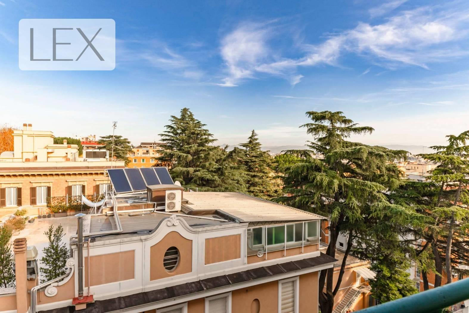 Rif. LZ/507 (SANTA COSTANZA) Ampio ingresso, salone, tre camere, cucina abitabile, studio, tripli servizi, BALCONE, TERRAZZO PERIMETRALE, cantina, BOX AUTO. € 1.225.000 Tel 06.69339108 www.lexrealestate.it