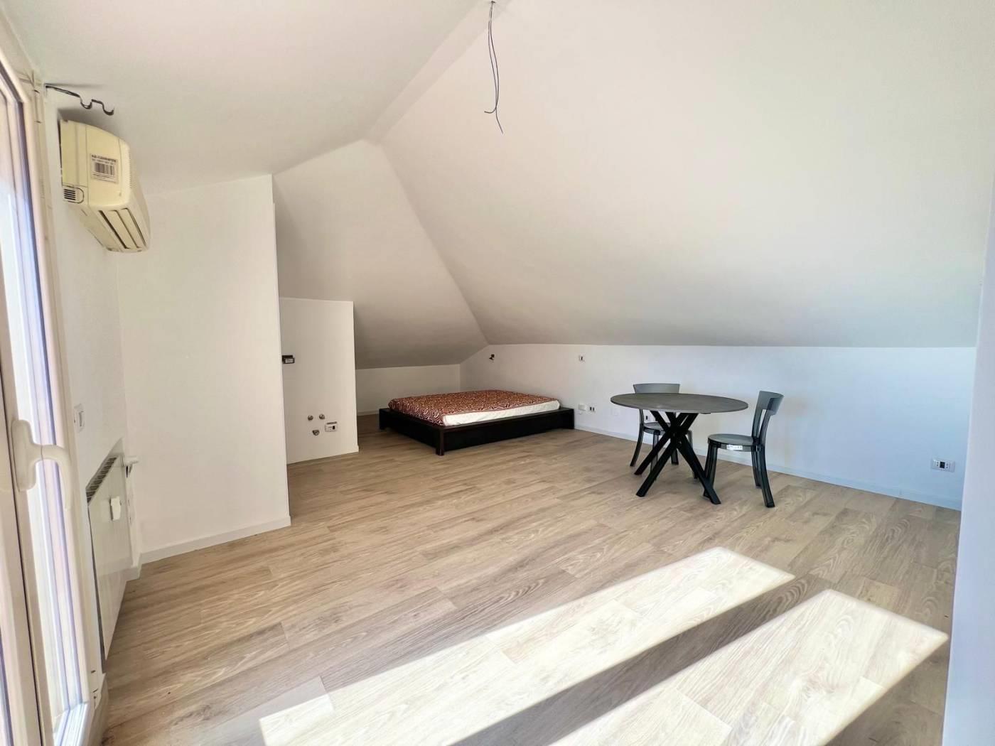 Zona Giorno: L'ingresso si apre su un ampio e luminosissimo soggiorno/notte con angolo cottura, il cuore della casa, caratterizzato da un'elevata luminosità per tutta la giornata grazie all'ottima esposizione.