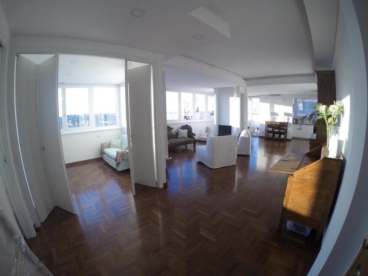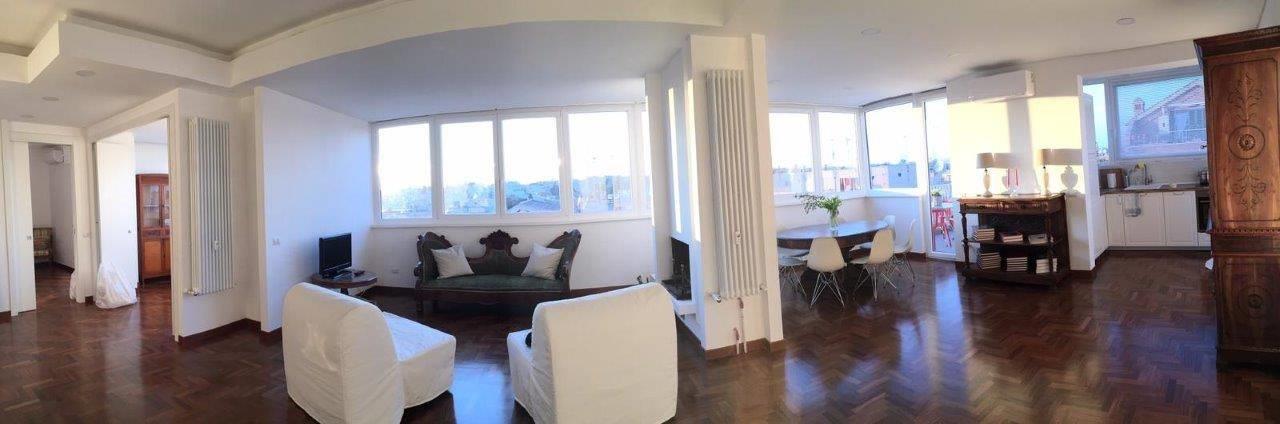 Talenti, ad.ze DEAR, in zona ottimamente collegata, adiacente alla Nomentana e tra i parchi dell'Aniene e Sannazzaro, proponiamo luminosissimo attico, affaccio panoramico, finemente ristrutturato. L'immobile è composto da un ampio salone con camino, cucina a vista, due camere, bagno e due terrazzi abitabili. L'appartamento è dotato di ampie finestre con infissi in pvc e doppi vetri, controsoffitti con faretti, condizionatori e pavimenti in parquet. Contratto breve - transitorio.
