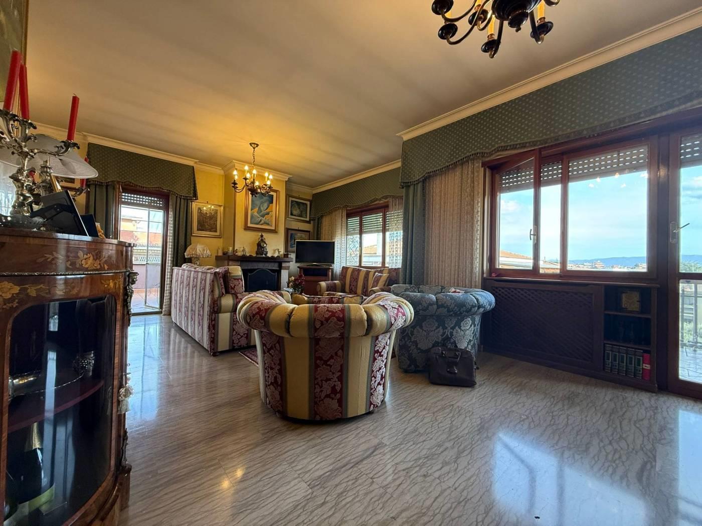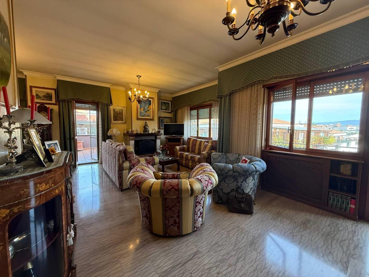 Al piano attico l'ingresso introduce in un elegante salone triplo con camino, ambiente di grande rappresentanza, estremamente luminoso e con accesso diretto a un ampio terrazzo vivibile. La cucina è abitabile ed è affiancata da un tinello; è inoltre presente un piccolo bagno, ideale anche come zona lavanderia, con ulteriore accesso a un secondo terrazzo. Un comodo disimpegno, arricchito da armadi a muro, conduce alla zona notte dove troviamo una spaziosa camera patronale con bagno en suite e sfogo esterno privato, oltre ad altre due camere da letto di generose dimensioni e un ulteriore bagno. Tutti gli ambienti hanno un affaccio esterno e l'appartamento gode di un'esposizione su quattro lati, caratteristica che garantisce luce naturale durante tutto l'arco della giornata.