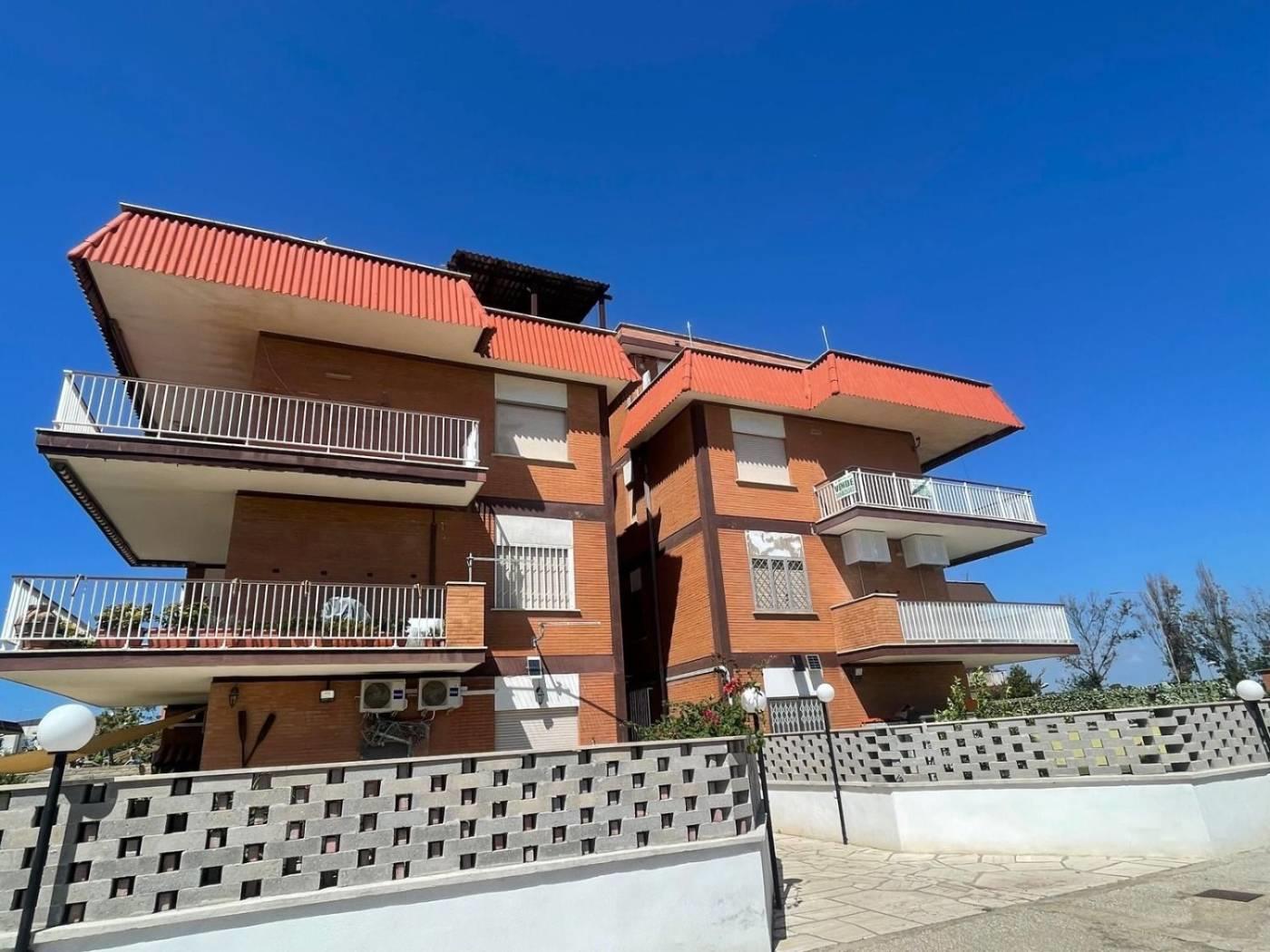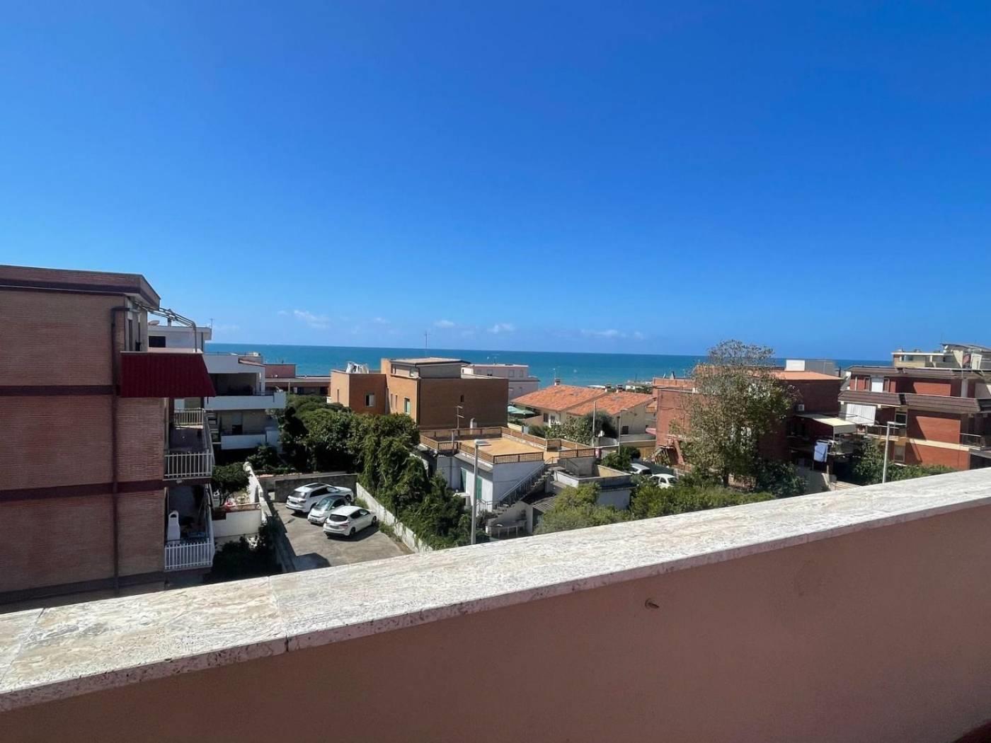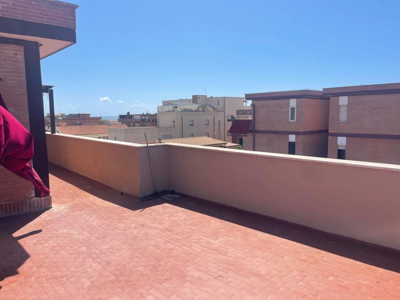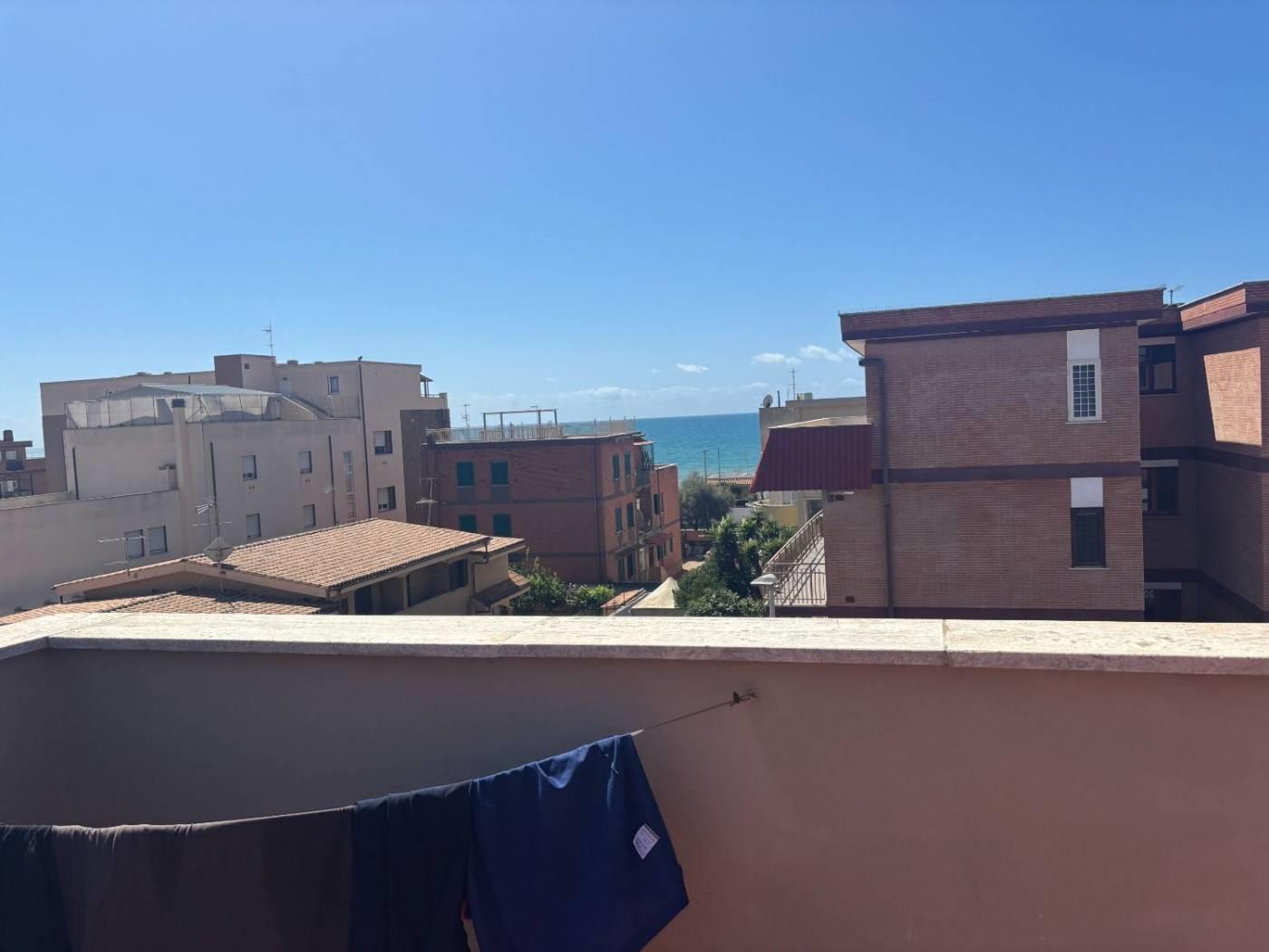 Torvaianica, precisamente in Via Svezia, attico, posto al terzo piano, con splendida vista mare e grande terrazzo panoramico, composto da ampio salone luminoso, cucina abitabile, entrambe con porta finestra che da accesso al terrazzo, camera matrimoniale e servizio finestrato con box doccia in muratura. Completa la proprietà un posto auto condominiale assegnato. Sul terrazzo è presente una tettoia in legno.