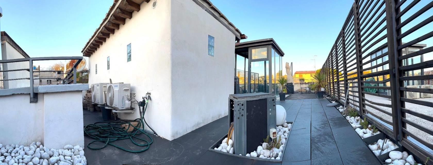 Trastevere, in Via San Francesco a Ripa, a pochi metri dalla piazza, RomaDomus presenta la vendita di un attico in palazzina storica, posto al 4° piano senza ascensore, composto da ingresso, corridoio, salone con angolo cottura, camera matrimoniale, cameretta, bagno e terrazzo. L'appartamento misura circa 70 mq mentre al piano soprastante, collegato con scala interna, il terrazzo di proprietà misura circa 110 mq. Sempre nel terrazzo abbiamo un cucinotto. L'appartamento è attualmente utilizzato come casa vacanza ma può essere libero in 2-3 mesi. Le condizioni sono buone, può essere abitato da subito. E' dotato di riscaldamento autonomo ed aria condizionata. La classe energetica è la G.