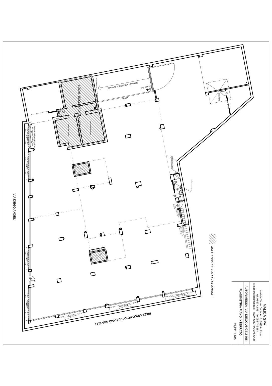 Società proprietaria Malica S.P.A. propone in locazione un'autorimessa situata in zona Casal Bruciato, area caratterizzata da un’alta densità abitativa e commerciale, con scarsa disponibilità di parcheggio. L’immobile si trova al piano seminterrato e dispone di una rampa carraia, ubicato esattamente in via Diego Angeli 165 in buone condizioni locative. La superficie complessiva dell’autorimessa è di 845 mq cat. C/6 di cui 41 mq cat. C/1 adibiti ad ufficio e autolavaggio, con annesso bagno e antibagno. Per la locazione è richiesto è un deposito cauzionale pari a tre mensilità di canone. A garanzia della solvibilità del conduttore è richiesta o una fideiussione personale a copertura di 24 mensilità di canone + IVA o una fideiussione bancaria di importo pari a 12 mensilità di canone + IVA.