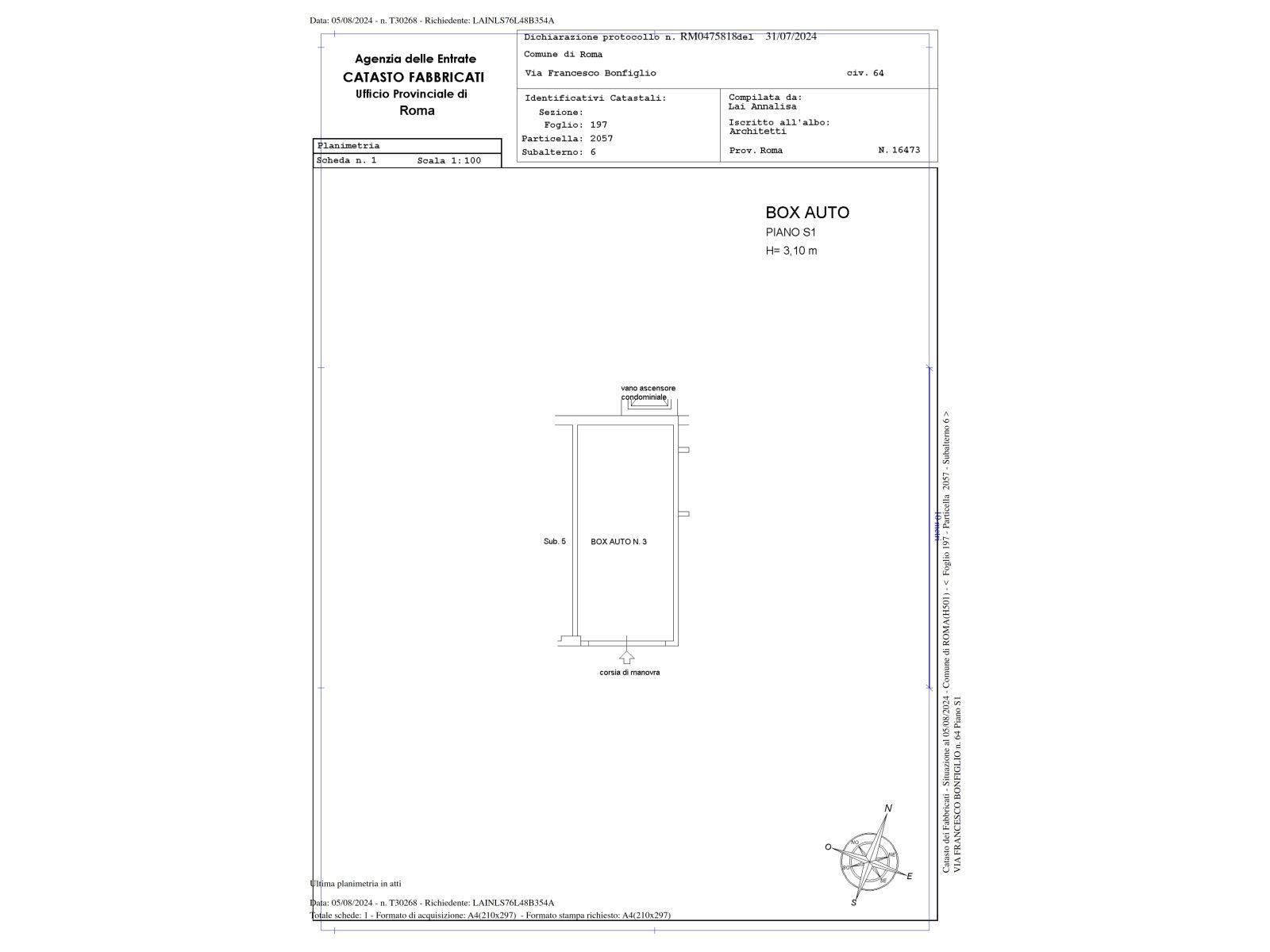 Via Francesco Bonfiglio, proponiamo in vendita box auto di circa 20 mq (larghezza 3,0 mt, lunghezza 6,75 mt, h 3,30 mt), situato al piano seminterrato, ideale per chi è alla ricerca di uno spazio sicuro e comodo per la propria auto, moto o come deposito.
