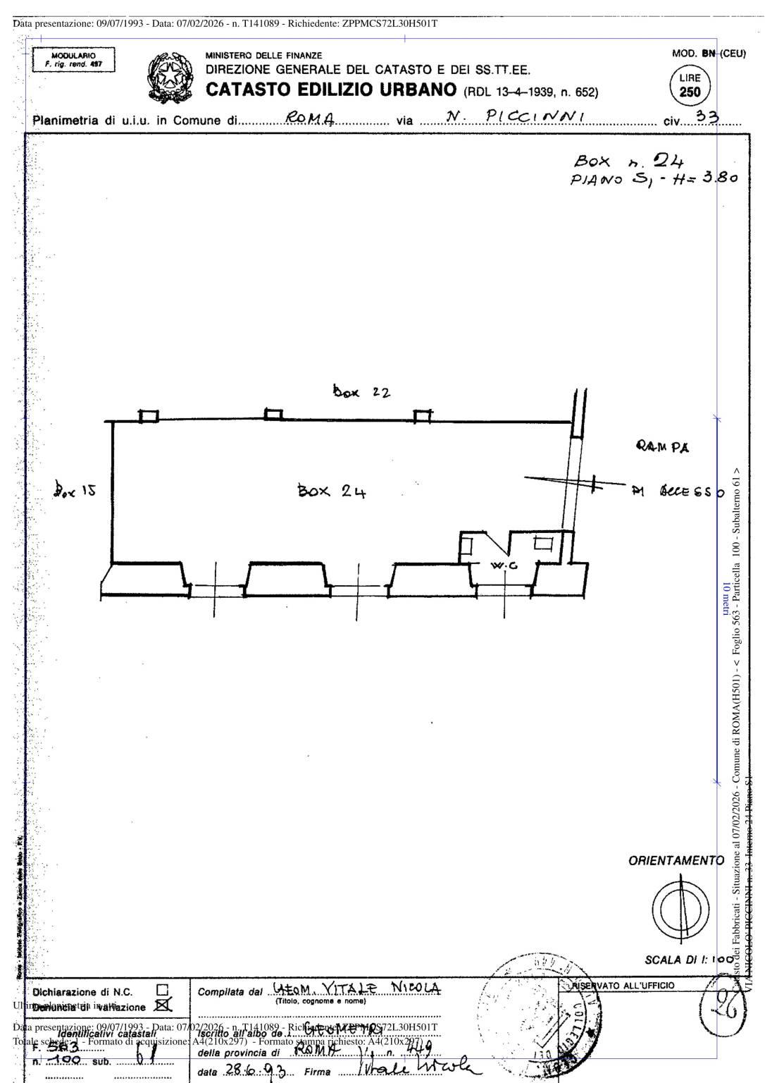 La RomaDomus Immobiliare presenta la vendita di un grande box auto sito nel quartiere Trieste/Africano in Via Nicolò Piccinni n. 33, di 57 mq di superficie catastale, posto al piano terra, con serranda motorizzata. Nel locale oltre ad ampie finestre è presente un bagno ed un secondo accesso pedonale. L'apertura della serranda misura 2,40 mt. L'accesso alla proprietà dalla strada è facilitato da un cancello automatico con telecomando ed ampi spazi di manovra. Gli oggetti che si possono vedere nelle fotografie sono quelli dell'attività hobbistica che svolgeva nel locale il de cuius degli attuali eredi.