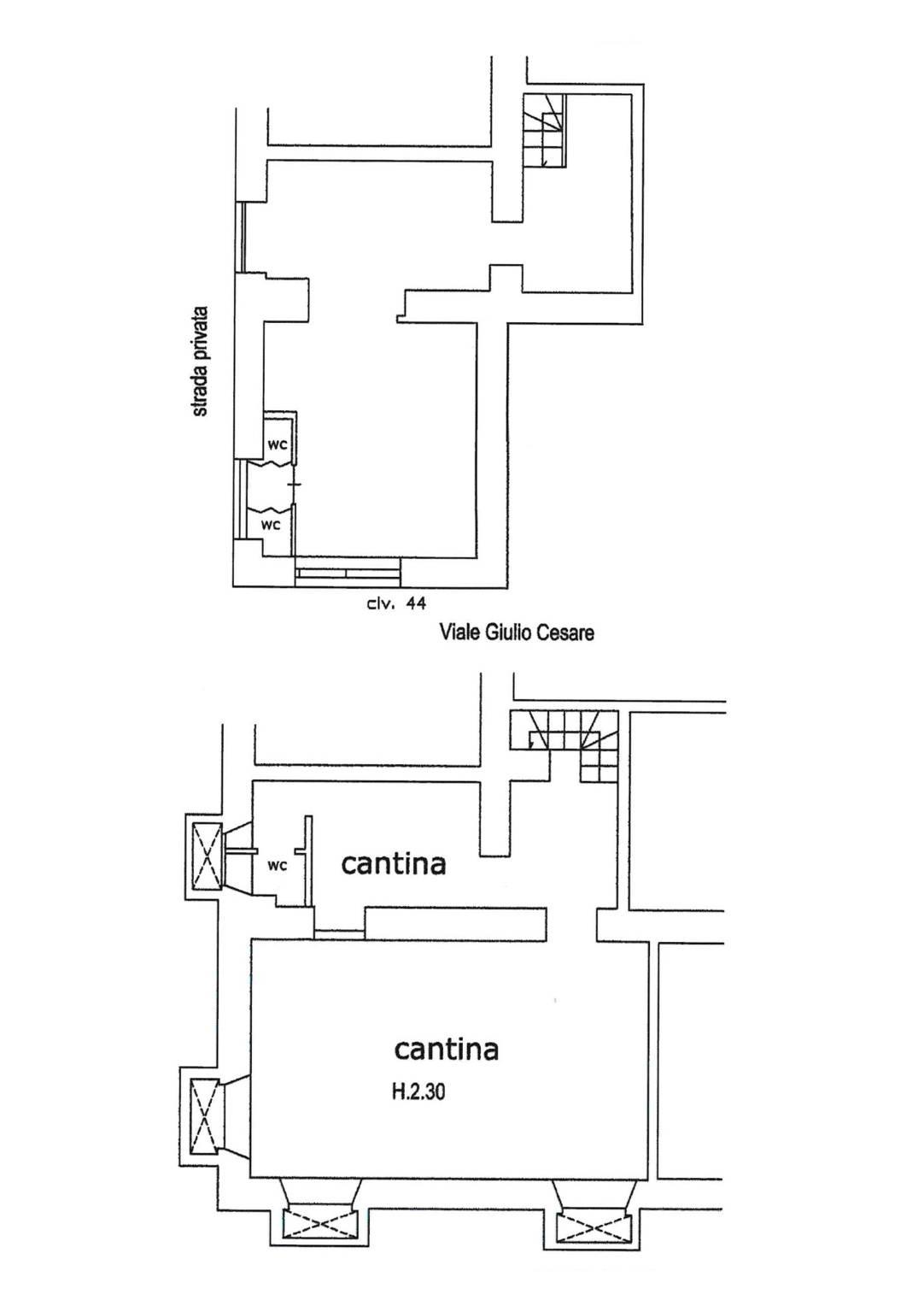 La Edares propone in vendita in Prati, Viale Giulio Cesare un box auto di 32 mq al piano terra con cantina di 60 mq al piano interrato. Possibilità di ponte levatoio per una seconda auto vista l'altezza del soffitto di 5 metri.