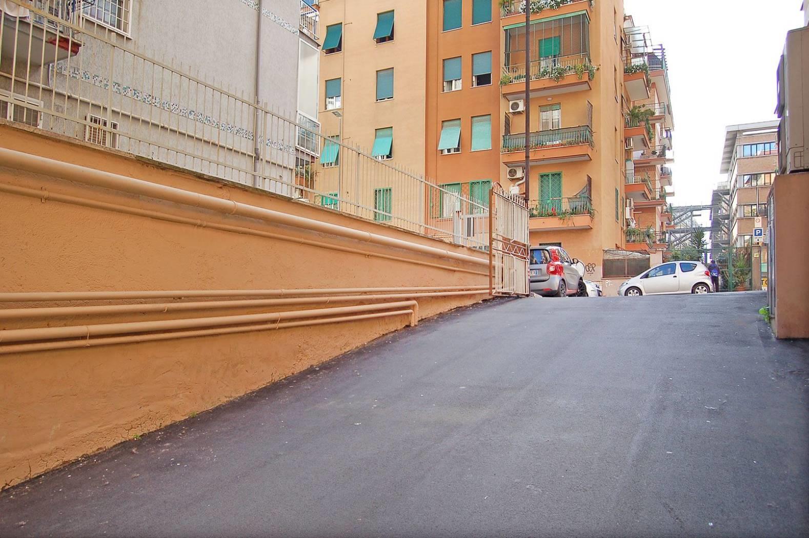 L’autorimessa si sviluppa su due livelli all’interno di un edificio moderno, con accesso diretto da Viale della Primavera e Via delle Robinie.