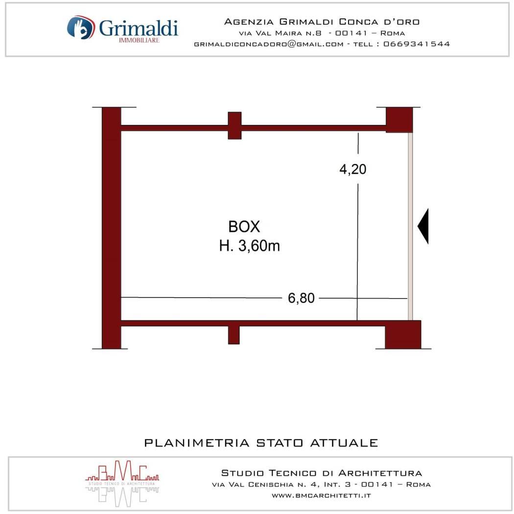 Via Pietro Teofilato, a ridosso dei quartieri Marconi, Monteverde e Portuense, adiacente a tutti i servizi di prima necessità, alla più commerciale viale Marconi, nelle vicinanze della Stazione Trastevere, proponiamo in vendita un ampio Box Auto di circa 32 mq posto al piano seminterrato accessibile da passo carrabile, con serranda automatica. Le misure sono di circa 4,20 m x 6,80 m per un altezza di 3,60 m. E' presente anche un soppalco di circa 8 mq.