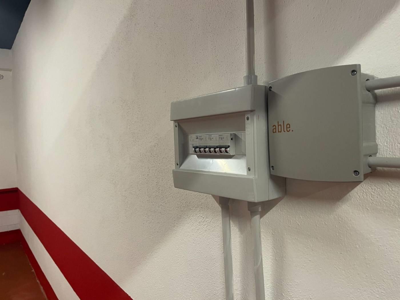Punto luce a soffitto, presa elettrica standard nonché una presa interbloccata per la ricarica di auto elettriche.