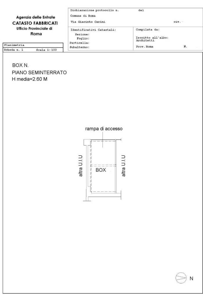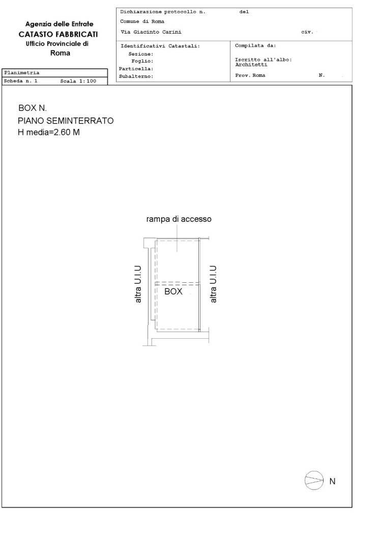 Monteverde ed esattamente in via Giacinto Carini proponiamo in vendita un box nuova costruzione di 14 mq ca. , precisamente l'entrata è di 2,25 metri e la profondità è di 5,29 metri, nel punto minimo per il posizionamento del pilozzo sono 5 metri.