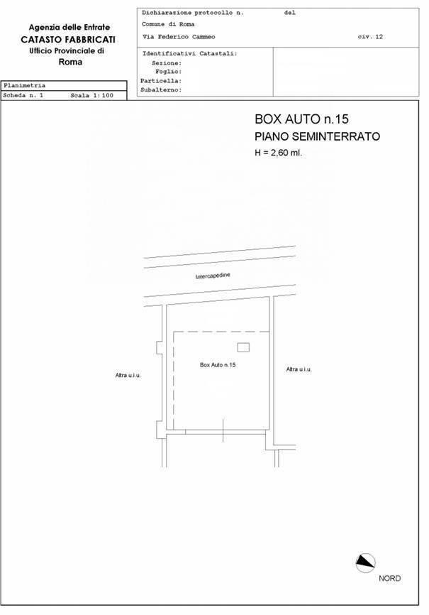 DiRe immobiliare propone in vendita un box auto di mq 36 all'interno di un'autorimessa di nuova costruzione, con accesso indipendente in prossimità di via Aurelia ed uscita in via Federico Cammeo n°12, mediante cancello automatico.