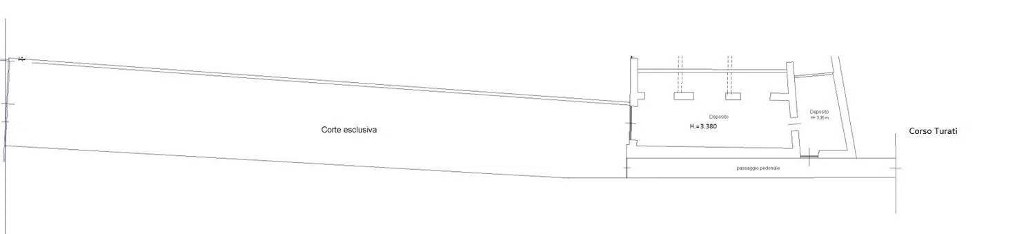 Proponiamo in vendita locale uso magazzino con annessa corte esclusiva di circa mq. 265 con accesso pedonale da corso Turati e carrabile meccanizzato da via Silvio Pellico. L'immobile è di 116 mq catastali con altezza di mt. 3,80.