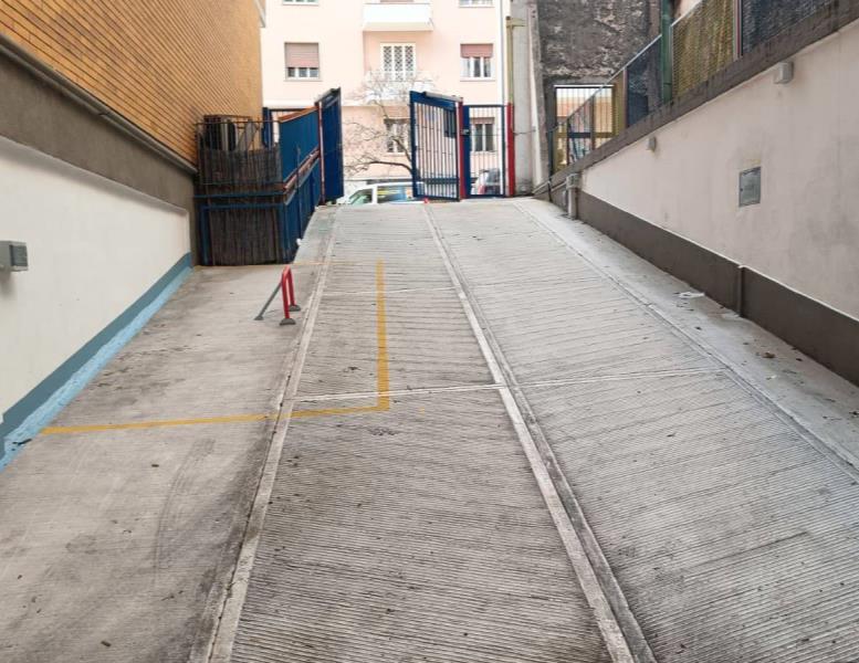 L’accesso è comodo e pratico, con larghezza di ingresso di 2,25 m e profondità fino a 5,29 m (minimo 5 m in corrispondenza del pilozzo), perfetto per diverse tipologie di auto.