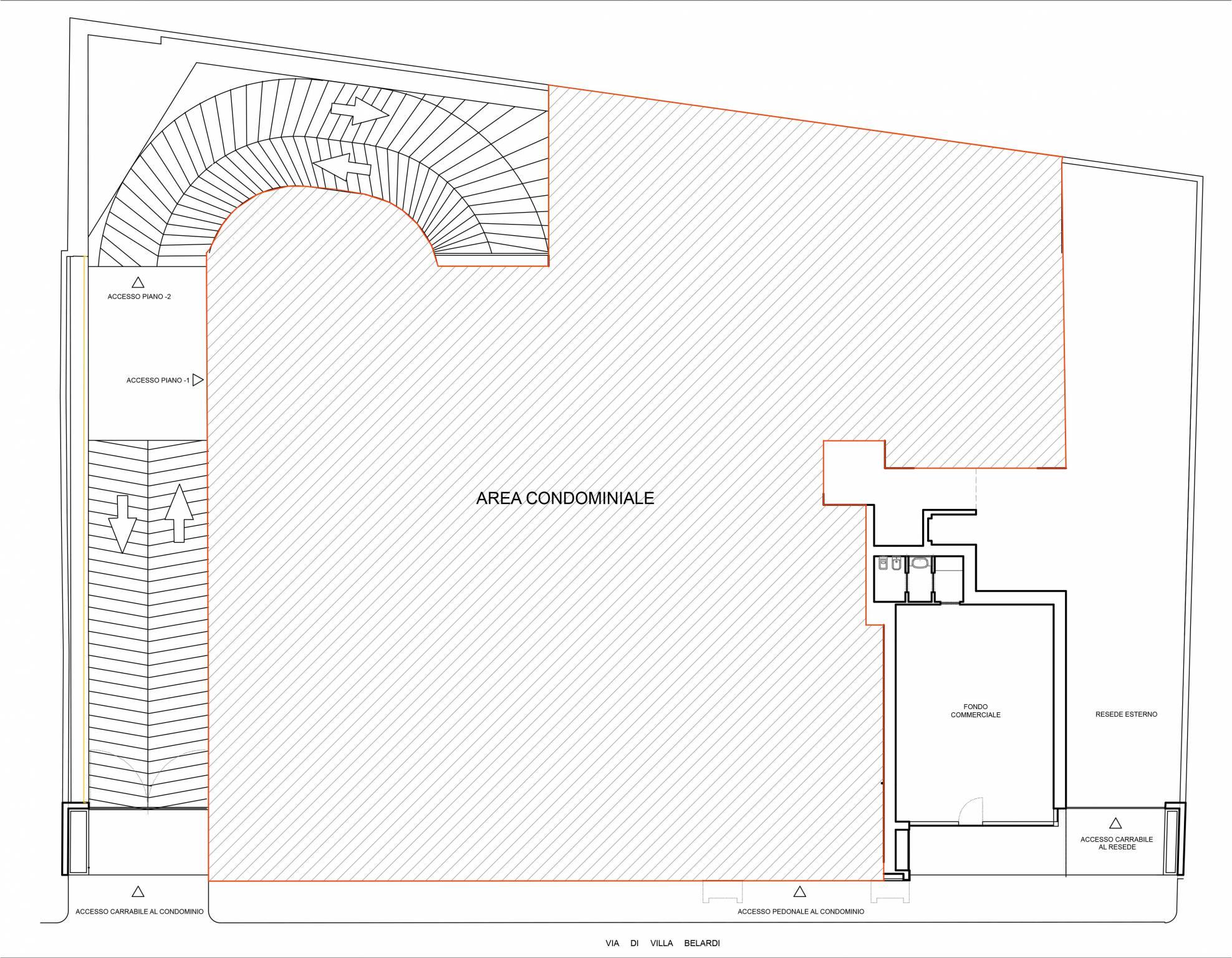 Al piano terra è presente un fondo commerciale di mq 70 al quale si può abbinare un'area esterna di pertinenza collegabile tramite una scala direttamente al piano interrato primo.