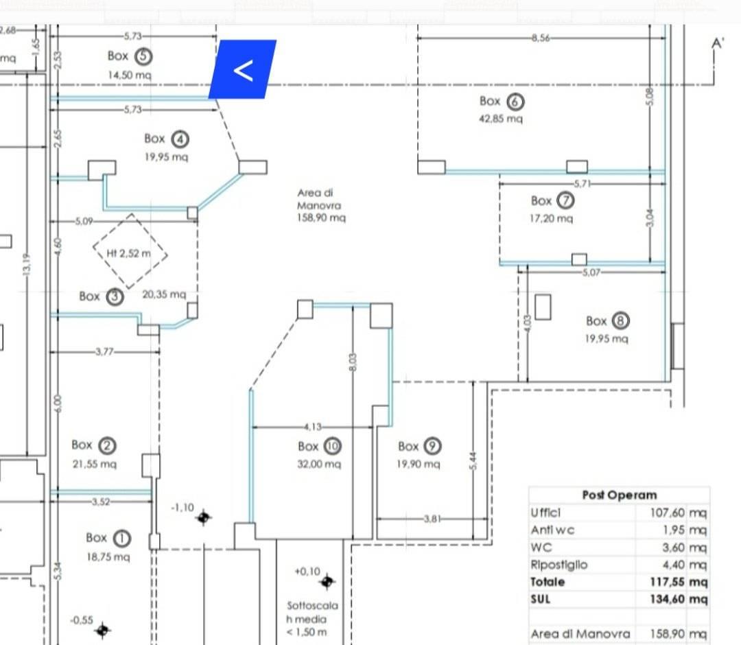L'accesso pedonale e carrabile è di facile accesso. Le corsie di manovra sono ampie e comode, con spazi di 5 metri che facilitano ogni movimento. I soffitti alti oltre 4 metri offrono la possibilità di realizzare un soppalco, aumentando ulteriormente lo spazio disponibile.