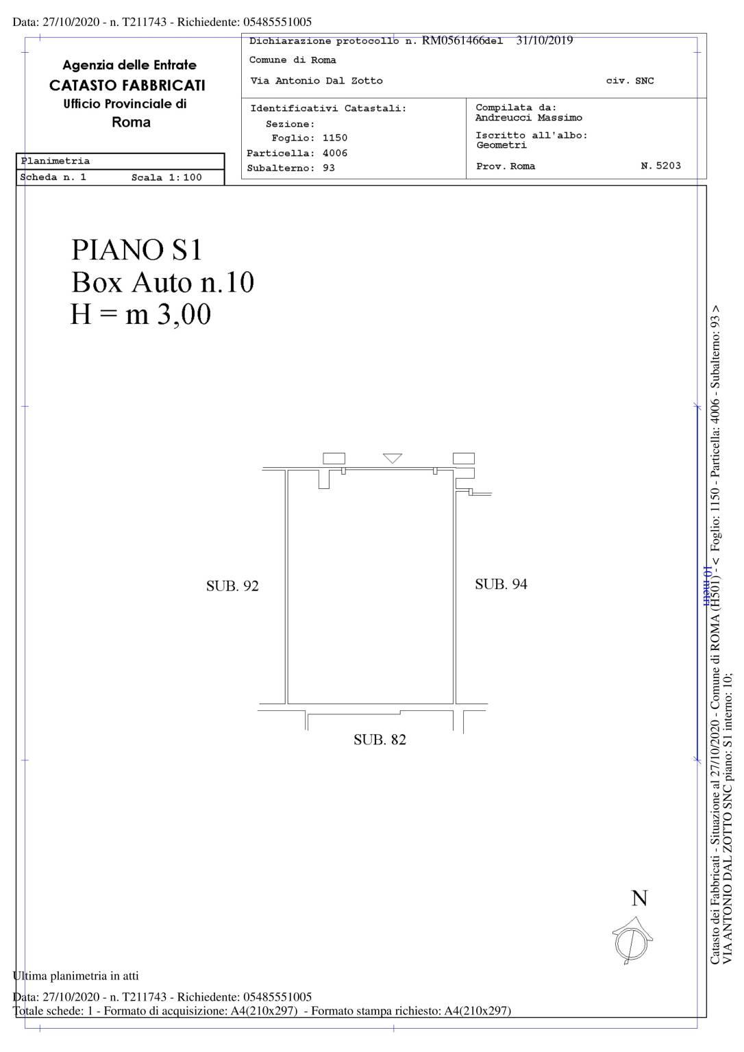 Vendesi box auto di 32 mq di recente costruzione in Via Antonio Dal Zotto, dotato di basculante motorizzata ed impianto elettrico per ricarica auto.