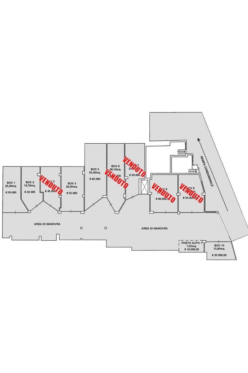 Via Vittorio Veneto - In zona centrale adiacente Piazza della Pace, proponiamo in vendita 1 Posto auto coperto di 8mq. circa e 5 Box auto di vari tagli, da 13mq. a 33mq. circa realizzati nel 2024, con serranda elettrica, ampio accesso e area di manovra.
