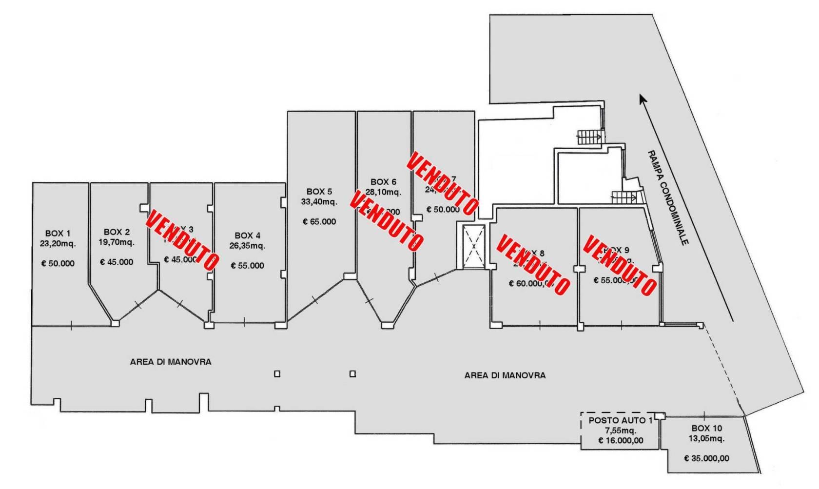 PREZZI A PARTIRE DA € 16.000 per il posto auto e da € 35.000 per i box.