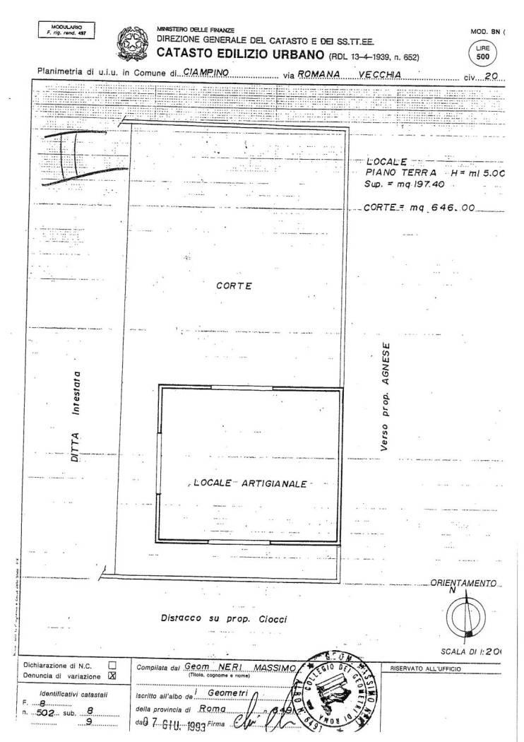 Ciampino vicino a tutti i servizi quali bus, fermata del treno e negozi di vario genere, esattamente in Via Marcandreola proponiamo in locazione capannone C/3 ad uso artigianale di mq 200 circa comprensivo di servizi ed un piazzale antistante mq 650 . L'immobile è in buono stato di conservazione ed ha un altezza massima di 5 mt. Per maggiori informazioni potete contattare i seguenti numeri di Tel.06/89119157-331/1973493