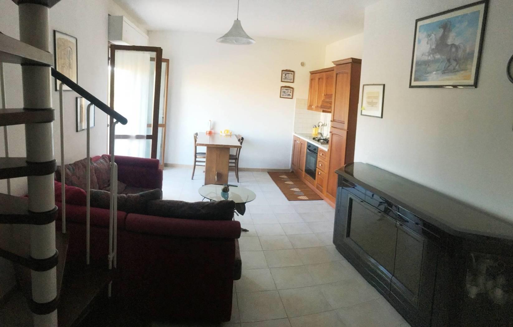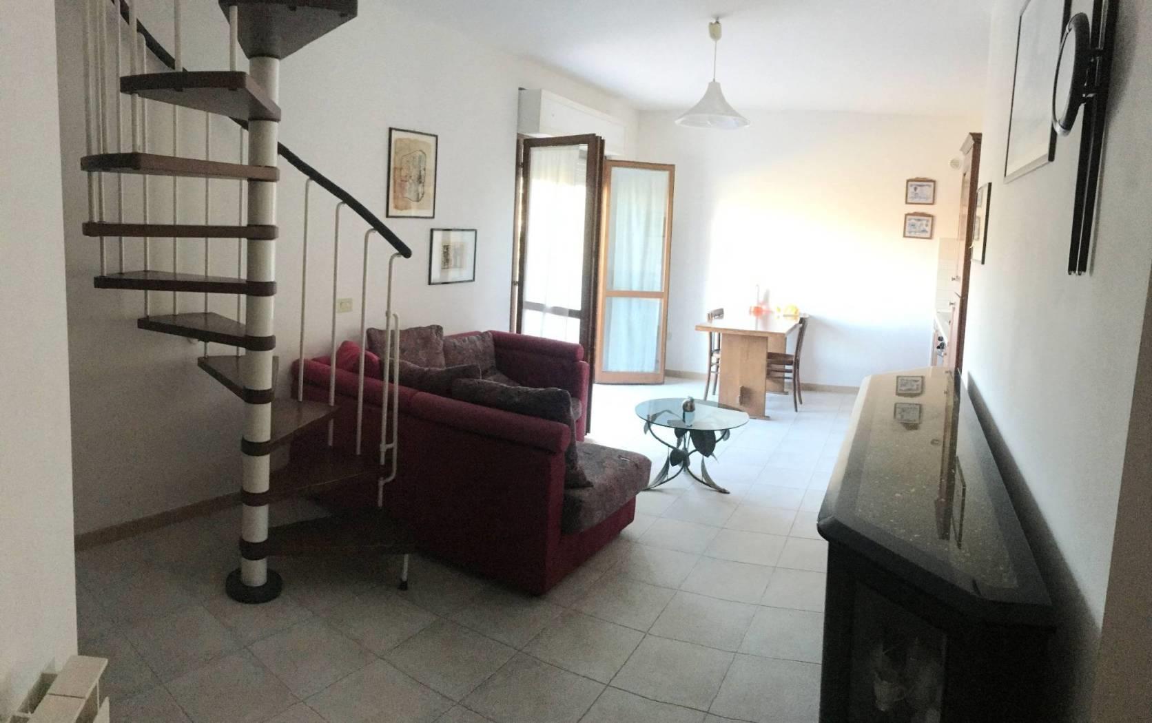 L'immobile si colloca al primo piano, un vero gioiello, e si sviluppa su due livelli per un totale di circa 70 metri quadri, offrendo spazi ben distribuiti e un'atmosfera accogliente e moderna. Al piano primo, si viene accolti da un ampio salone open space con angolo cottura e balcone, ideale per momenti di convivialità e relax, completato da un pratico ripostiglio e un bagno elegantemente rifinito. Salendo al piano superiore, troviamo una confortevole camera da letto che si affaccia su un terrazzo privato, perfetto per godere dell'aria aperta e di momenti di tranquillità.